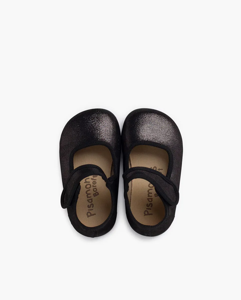 Босоножки для девочки, блестящие, Мэри Джейн с липким ремешком Pisamonas, черный