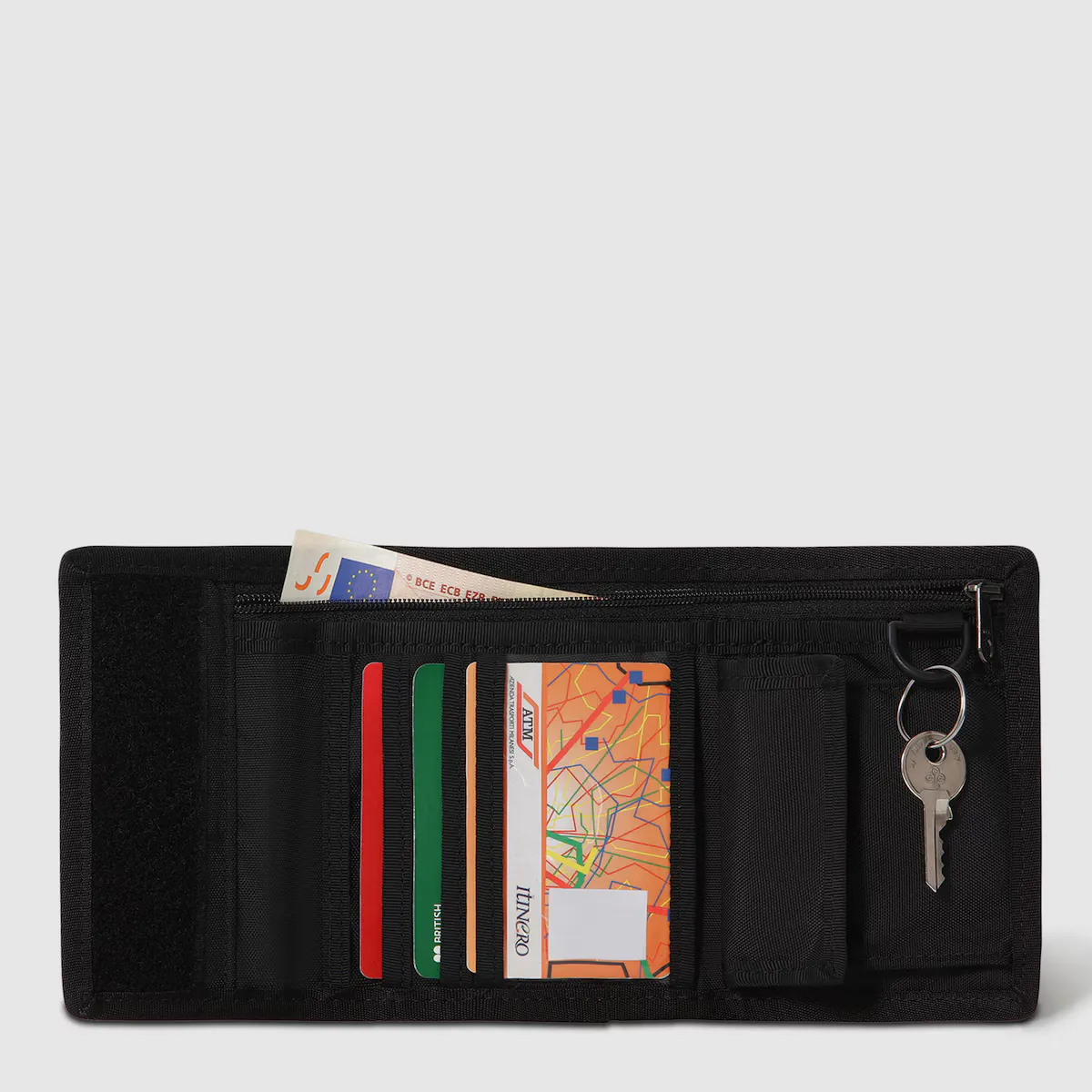 Наш портмоне Base Camp, изготовленное из прочных материалов, идеально подходит для хранения ваших карточек и наличных благодаря застёжке на молнии и карману на велкро.