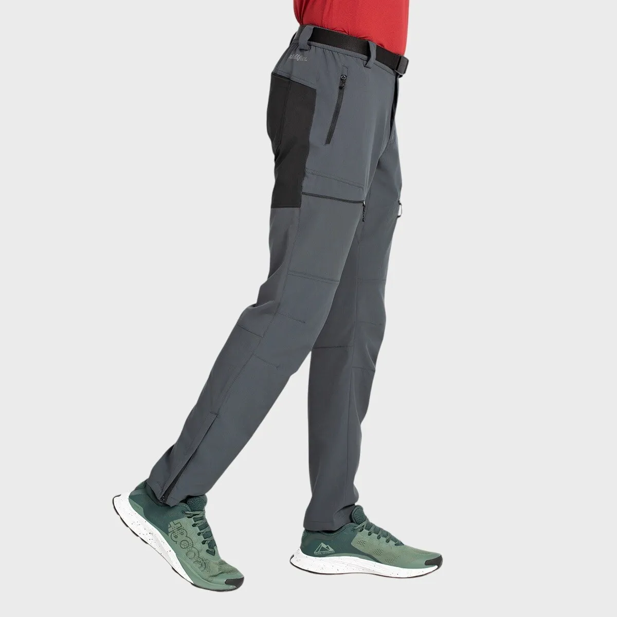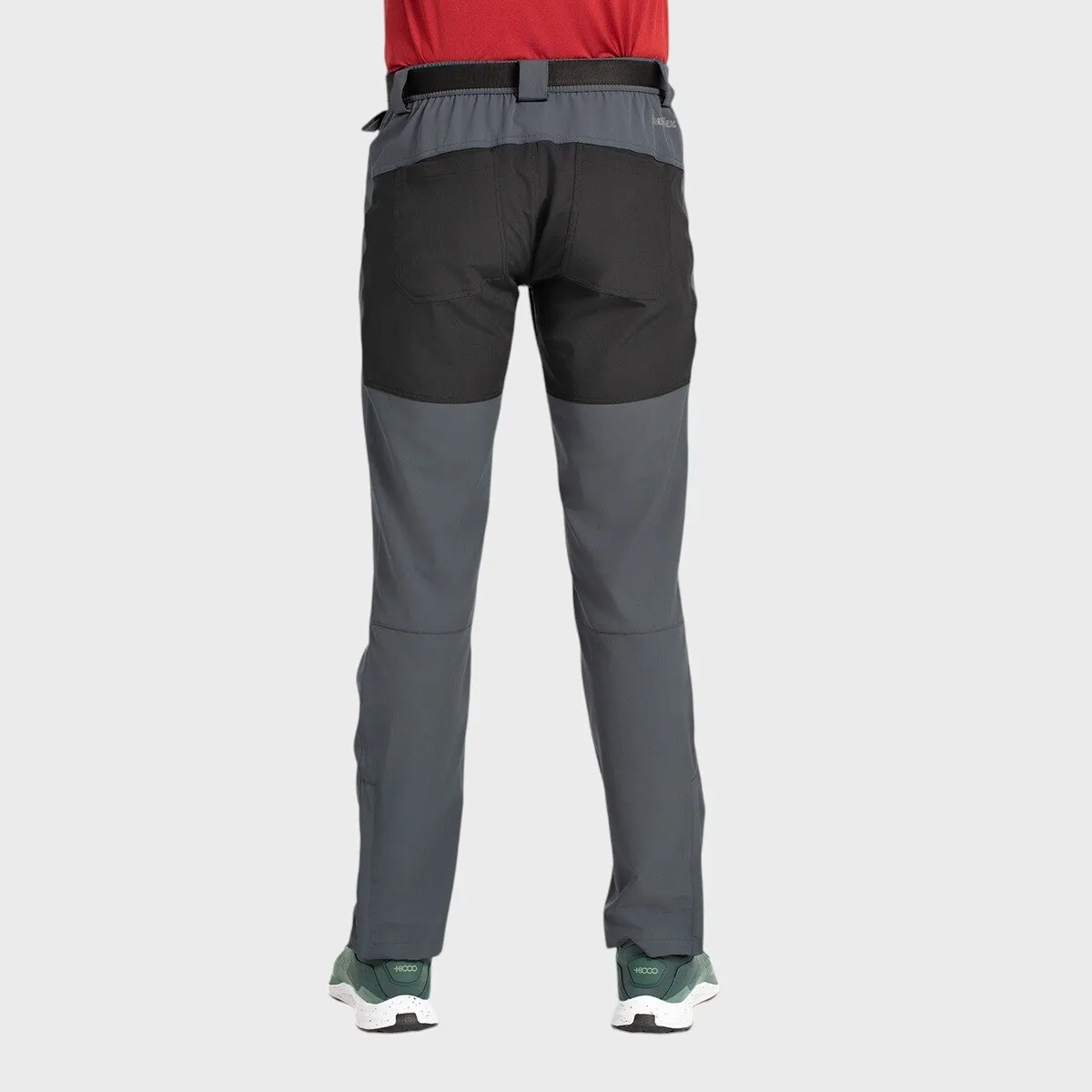 Треккинговые брюки с облегающим фасоном и контрастными вставками на задней части, выполненные из двухслойной ткани Shellflex, с фронтальными карманами и карманами по бокам с застежками-молниями, с доп. карманами на спине для легкого доступа, предформованные колена. Эластичный пояс с индивидуальным ремнем, полуспортивные низы с боковыми застежками-молниями.