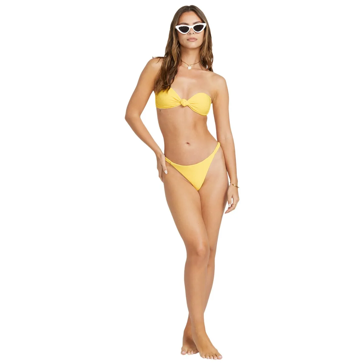 Топ бикини средней степени покрытия для женщин. Характеристики включают: Коллекция: Tanlines, Ткань: Смешанная ткань Tanlines 91% переработанный полиэстер 9% эластан, Дизайн: бандо, Вырез: бандо с передним узлом Лола, Ремни: Регулируемые съемные бретельки, Уплотнение: Съемные чашки, Покрытие: Среднее покрытие и Бренд: Вышитый логотип на левой боковой шве.