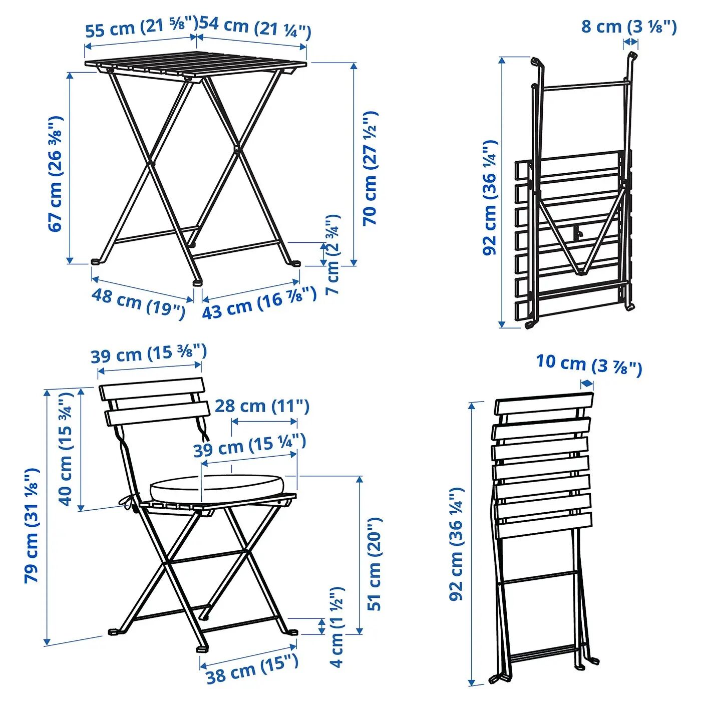 Стол+2 стула, на открытом воздухе TÄRNÖ IKEA, 55x54 см, цвет black/light brown stained foldable/foldable kuddarna light grey-beige
