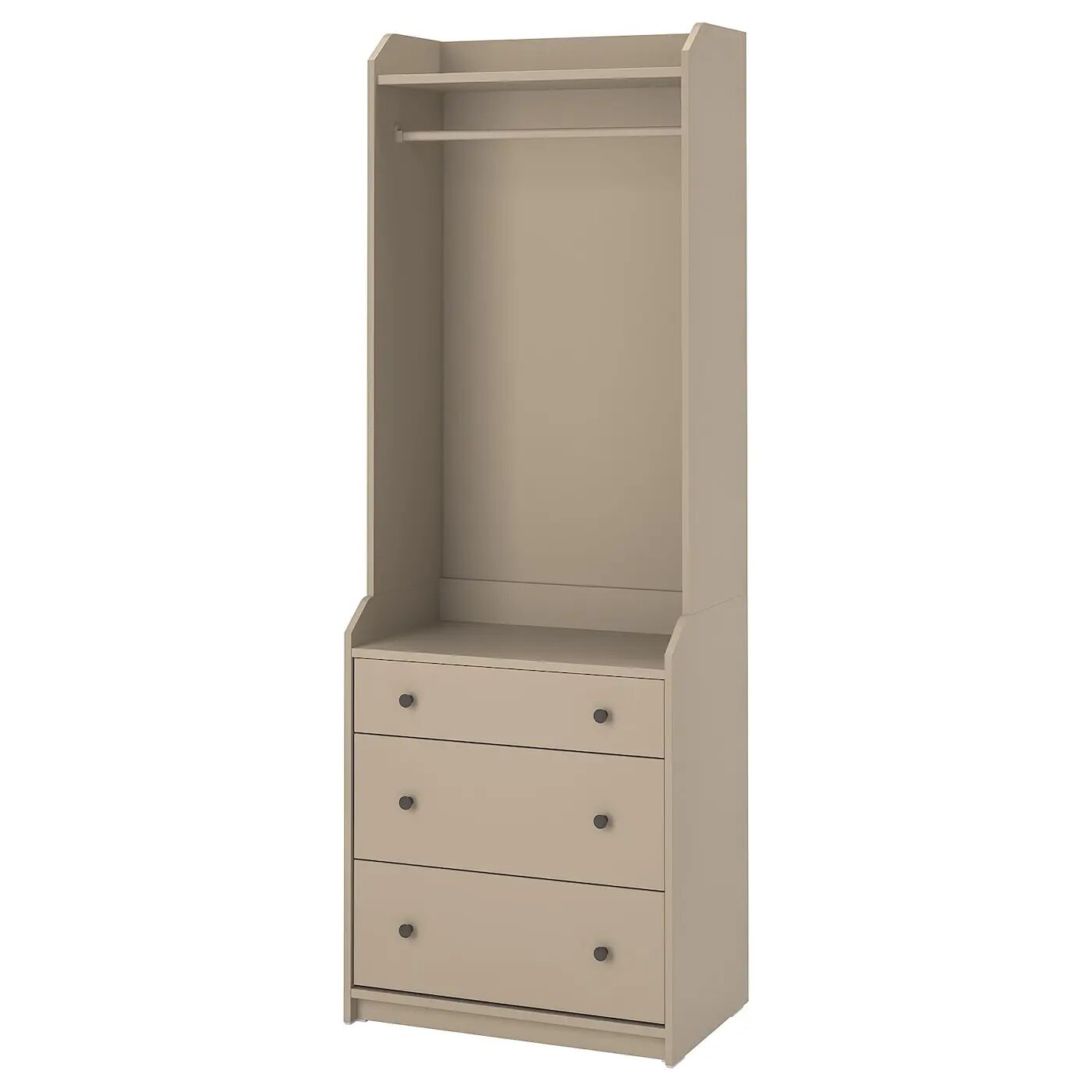 Характерная верхняя полка является общей чертой всей серии HAUGA и дополняет традиционный стиль. Независимо от того, используете ли вы ее для шляп, коробок или украшений, край удерживает ваши вещи на месте.