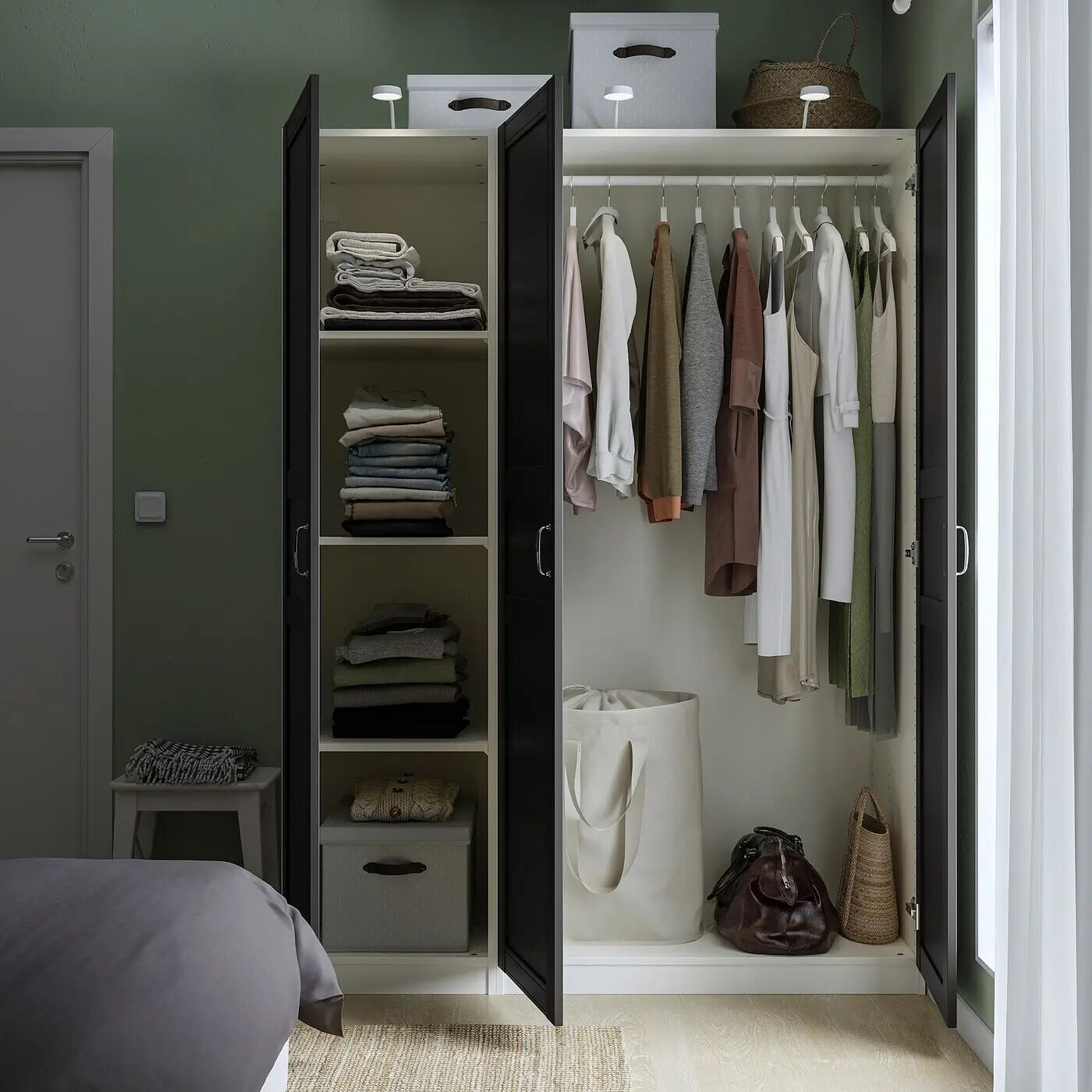 Внутренние аксессуары, которые помогут вам организовать пространство в гардеробе, продаются отдельно.