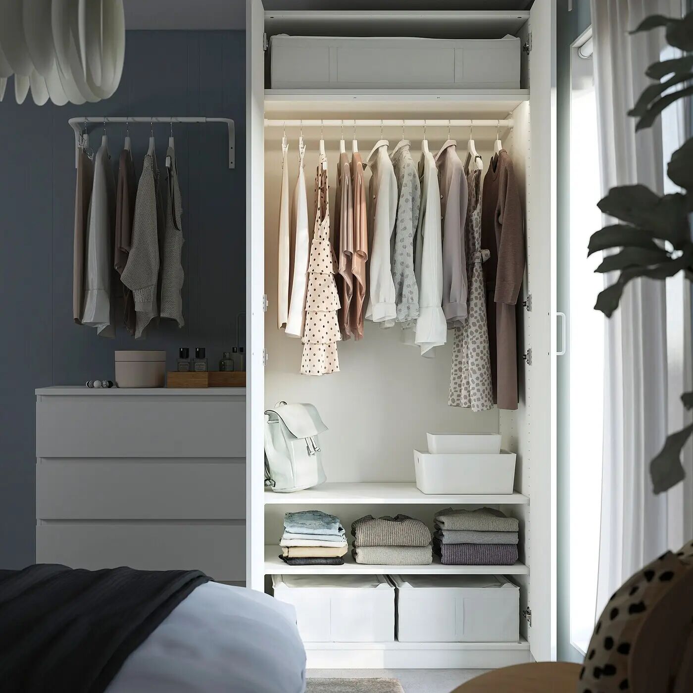 Внутренние аксессуары, которые помогут вам организовать пространство в гардеробе, продаются отдельно.
