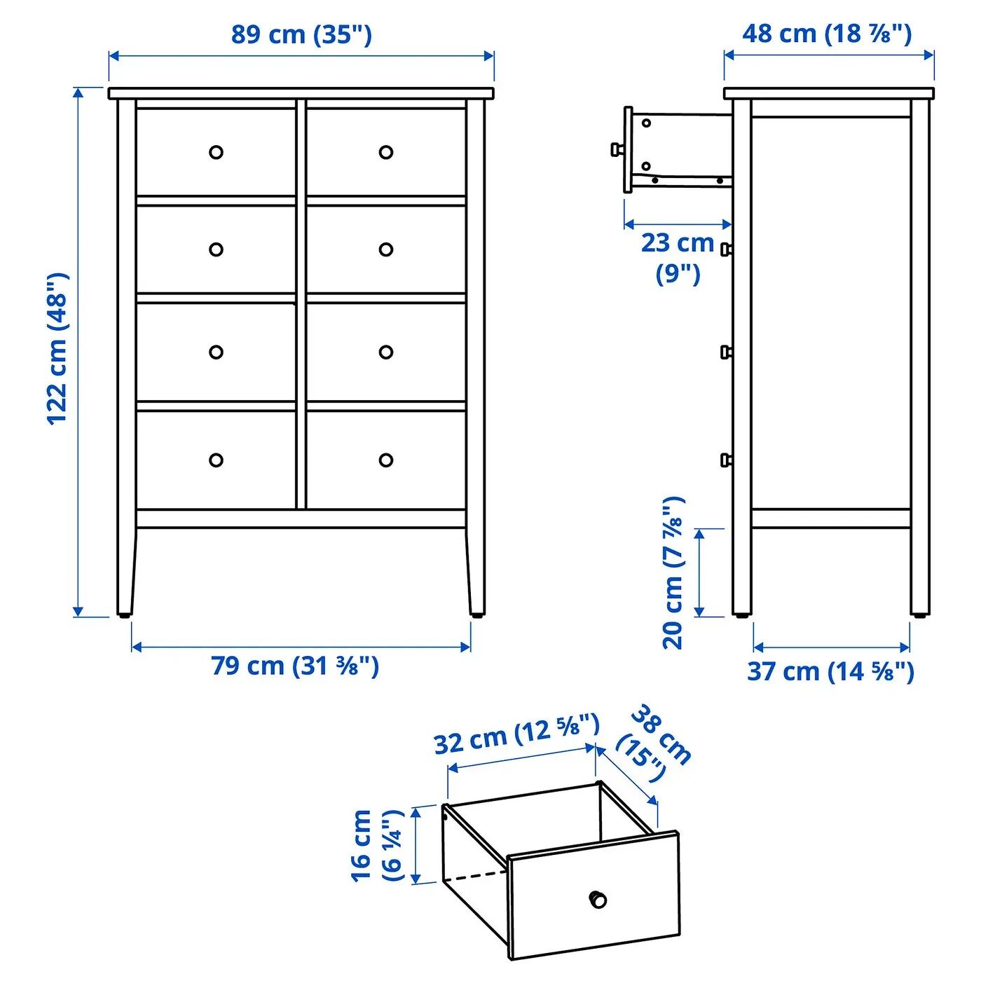 Этот высокий комод имеет 8 плавно выдвигающихся ящиков, которые позволяют легко организовать хранение вещей.