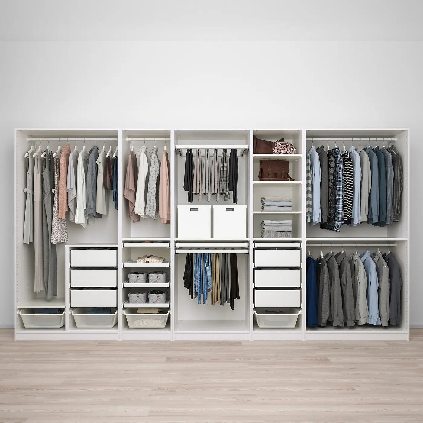 Здесь есть место как минимум для 140 вещей — и это только на вешалках для одежды! У вас больше места в ящиках и на полках, а также двойные вешалки для брюк, чтобы ваши брюки не мялись.