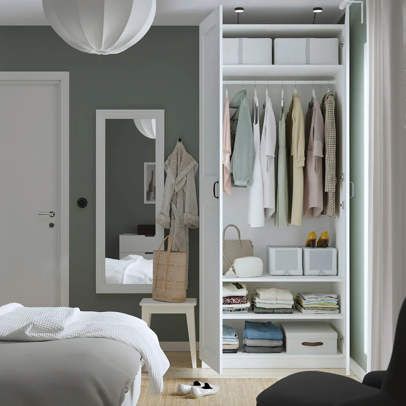 Внутренние аксессуары, которые помогут вам организовать пространство в гардеробе, продаются отдельно.
