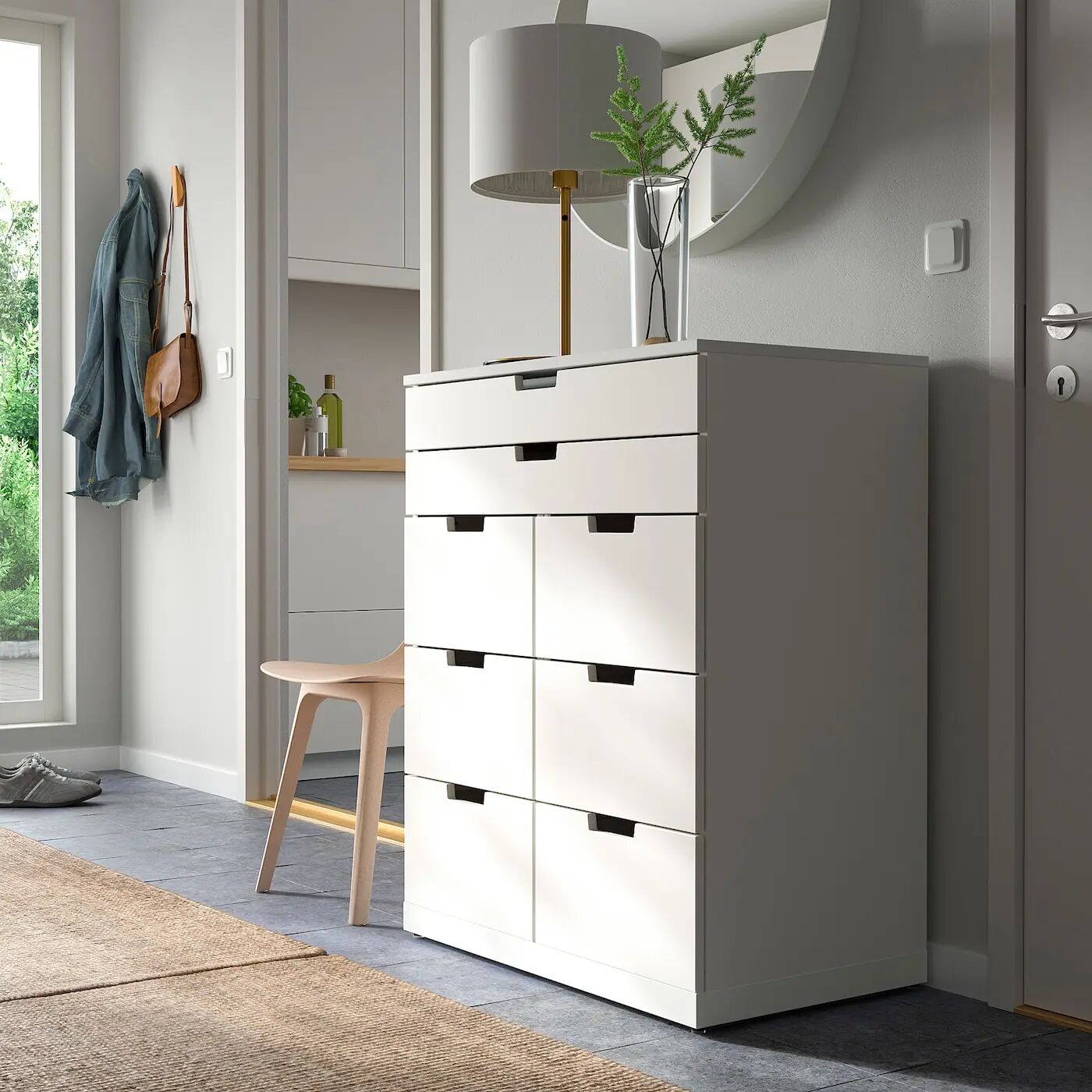Конечно, ваш дом должен быть безопасным местом для всей семьи. Вот почему в комплект входит предохранительное приспособление, чтобы вы могли прикрепить комод к стене.
