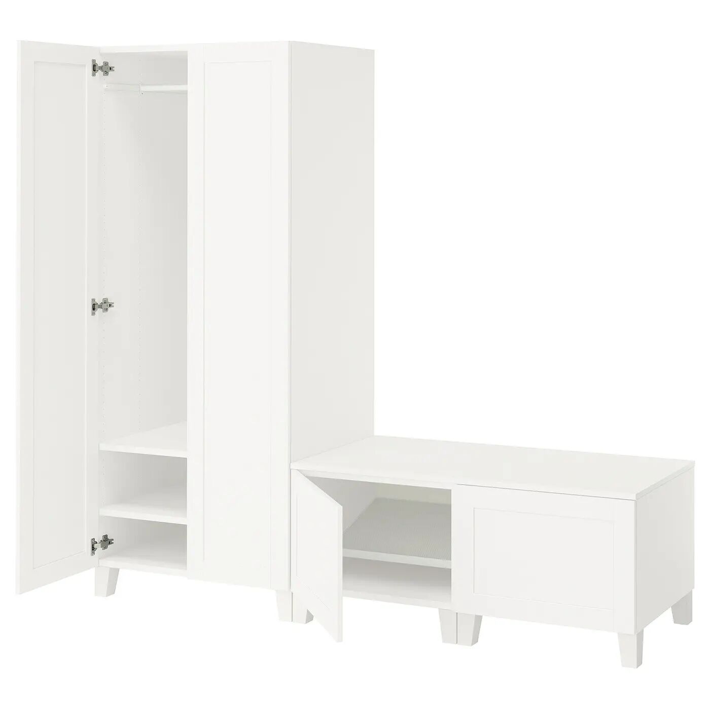 Благодаря столешнице на низких рамах система хранения также превращается в практичную скамью.