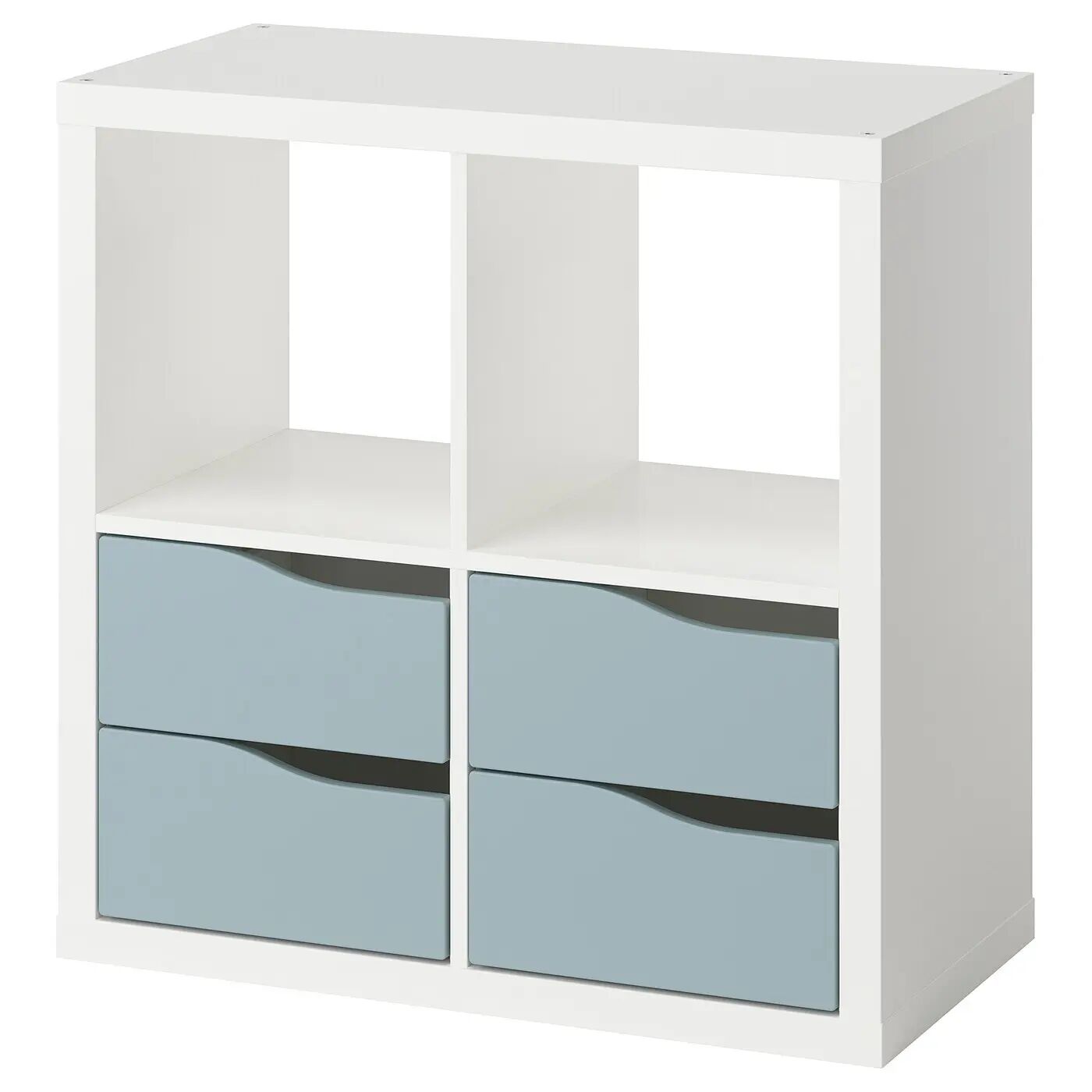 Дополните стеллаж подстольем KALLAX, чтобы придать ему новый облик и облегчить уборку под ним.