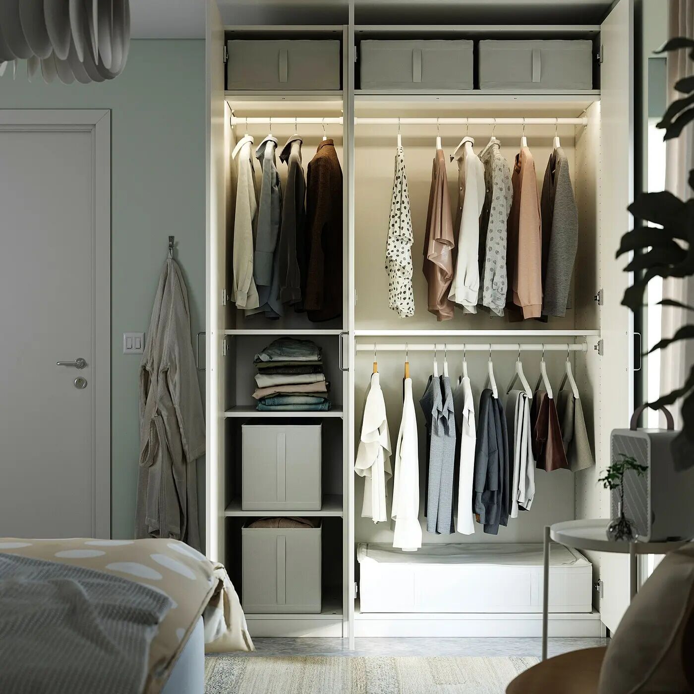 Внутренние аксессуары, которые помогут вам организовать пространство в гардеробе, продаются отдельно.