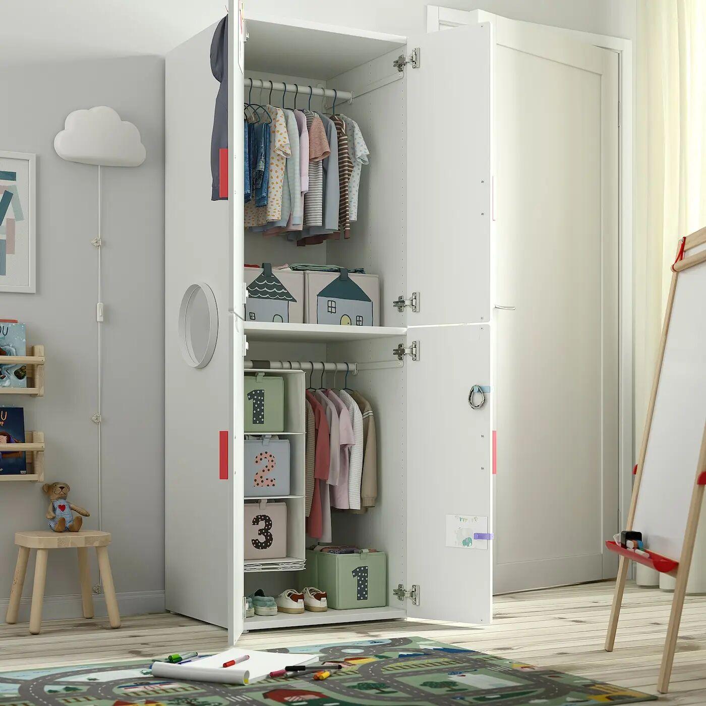 Ваш ребенок сможет пользоваться этим шкафом в течение многих лет, поскольку он достаточно глубокий, чтобы вместить вешалки для взрослых, а его внутреннее пространство можно перемещать по мере роста ребенка.