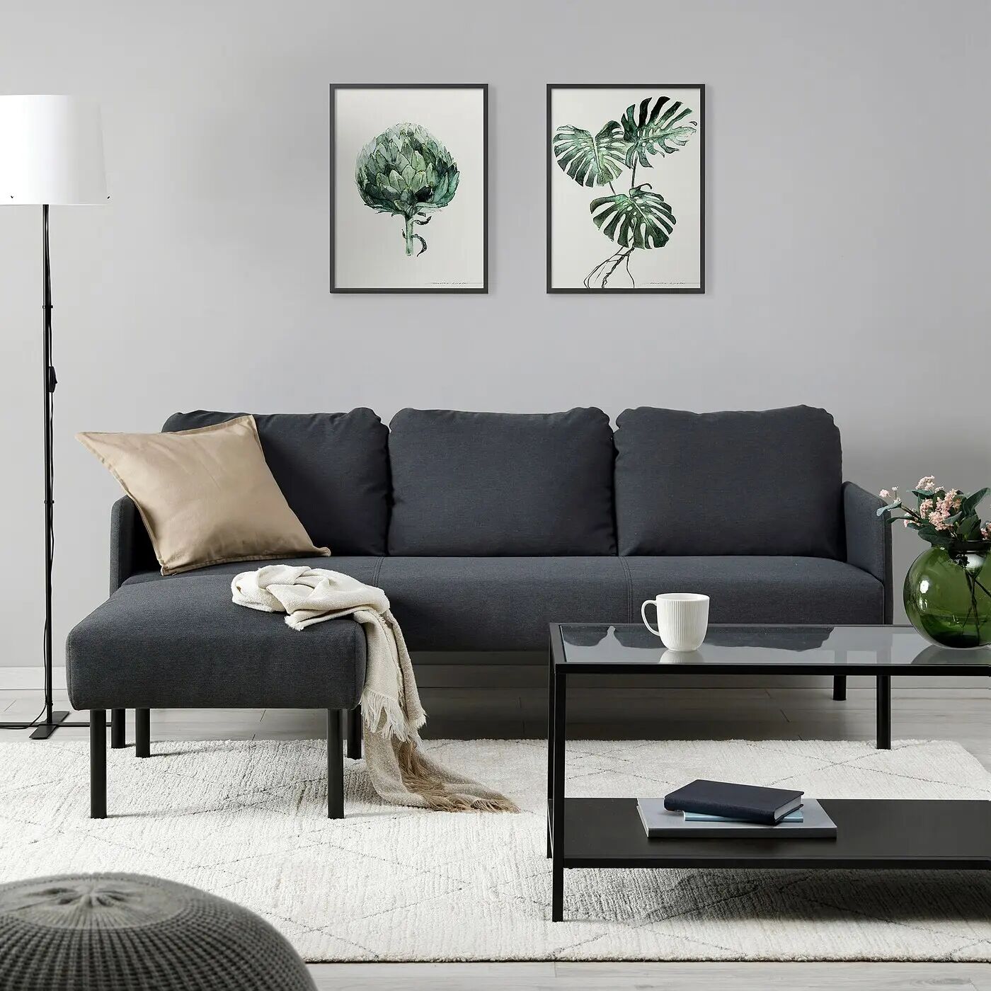 Диван GLOSTAD имеет простую конструкцию, которая в то же время удобна благодаря толстому сиденью, мягким подлокотникам и мягким подушкам спинки, которые надежно фиксируются на месте.