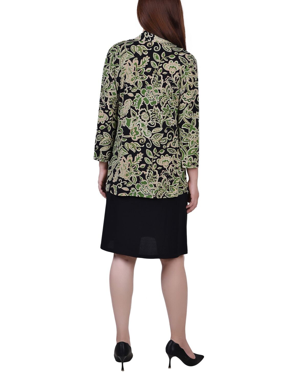 Это платье NY Collection 2fer очень легко носить с комбинированным жакетом с принтом и съемным ожерельем.