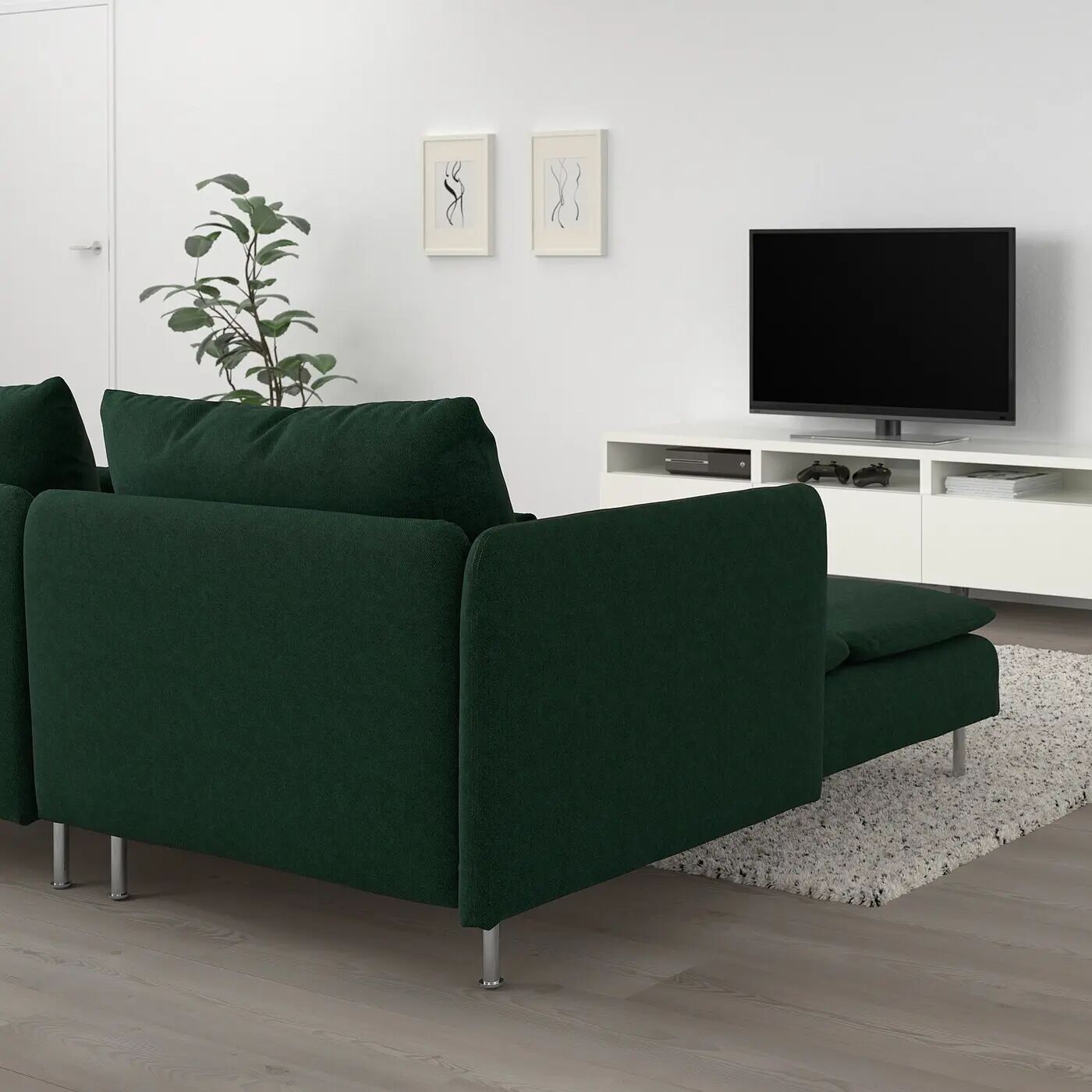 Серия сидений SÖDERHAMN позволяет вам сидеть глубоко, низко и мягко благодаря свободным подушкам спинки для дополнительной поддержки.