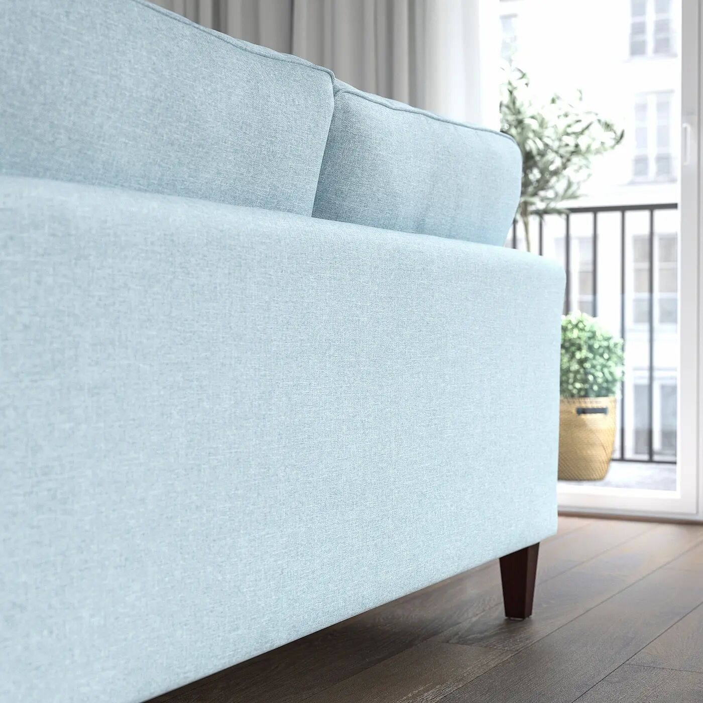 Традиционный дизайн, который подходит многим домам. Подогнанный чехол с кантом и видимые деревянные ножки придают дивану изысканный и элегантный вид.