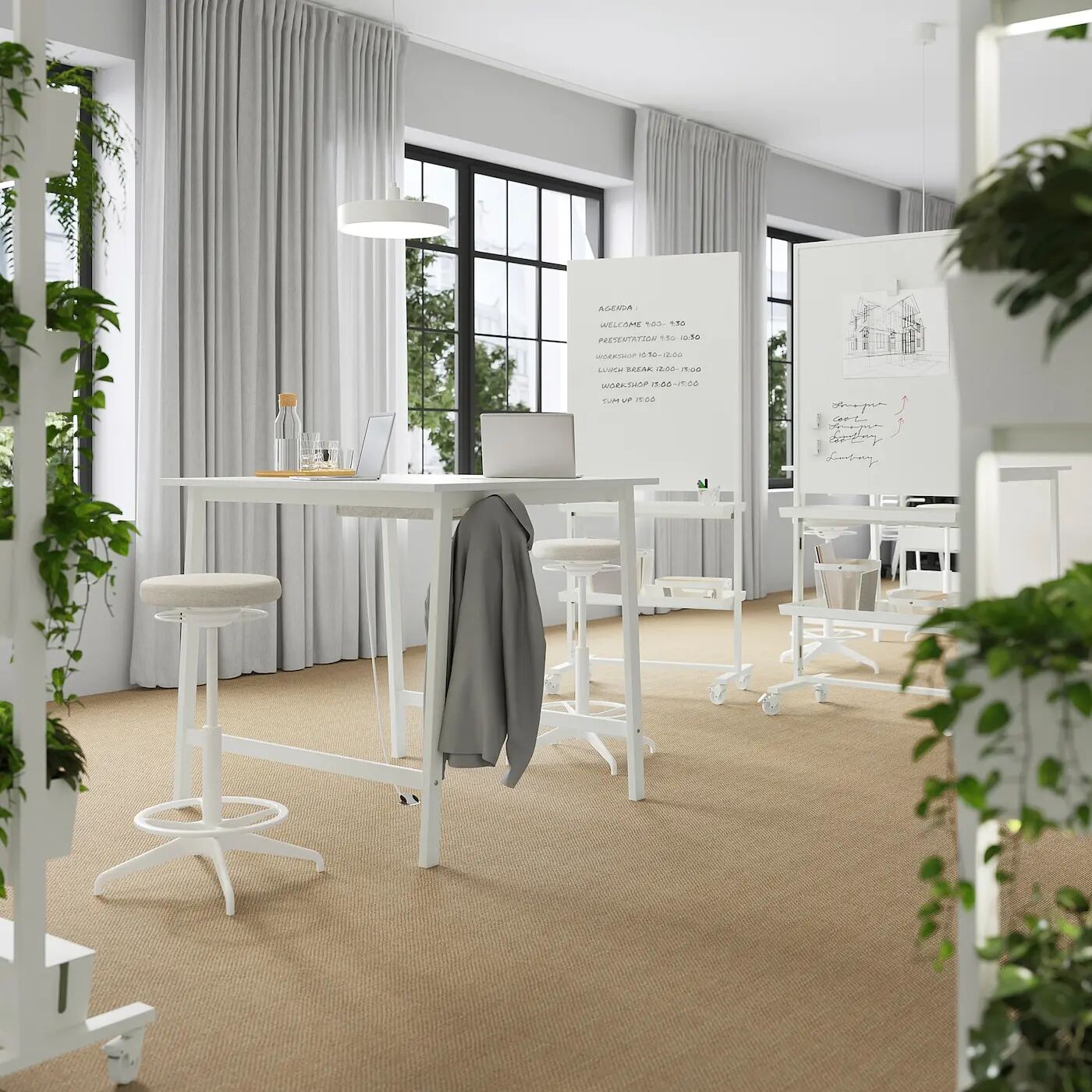 За этим высоким столом можно работать сидя или стоя. Он идеально подходит для совещаний, бесед, перерывов, семинаров или самостоятельной работы бок о бок в открытых коворкинг-зонах.