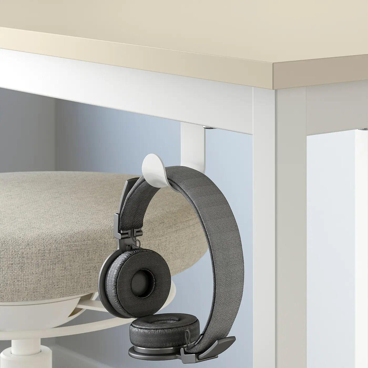 Вы можете повесить необходимые вещи, такие как сумка или наушники, на два крючка по бокам стола, чтобы они были под рукой.