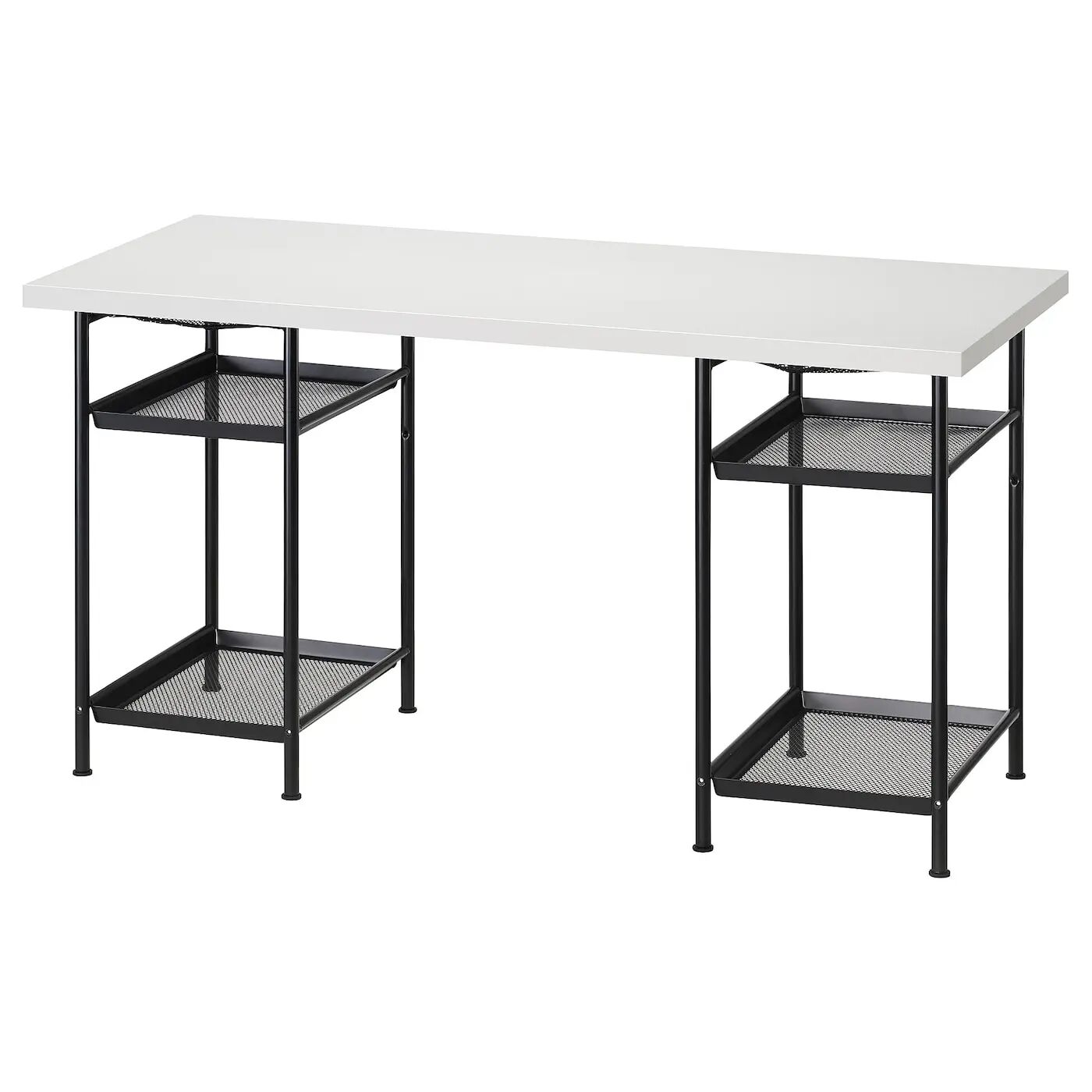 На двух полках достаточно места для бумаги, блокнотов и книг, что освобождает место на столешнице.
