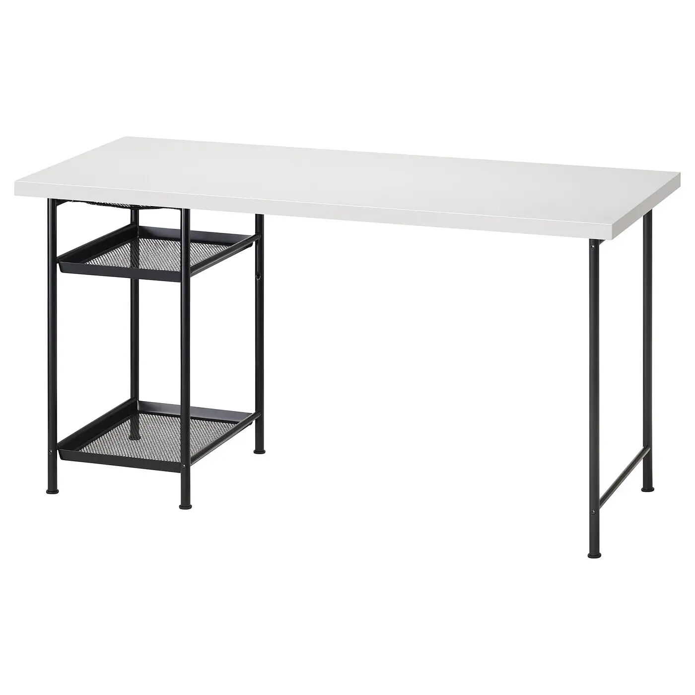 На двух полках достаточно места для бумаги, блокнотов и книг, что освобождает место на столешнице.