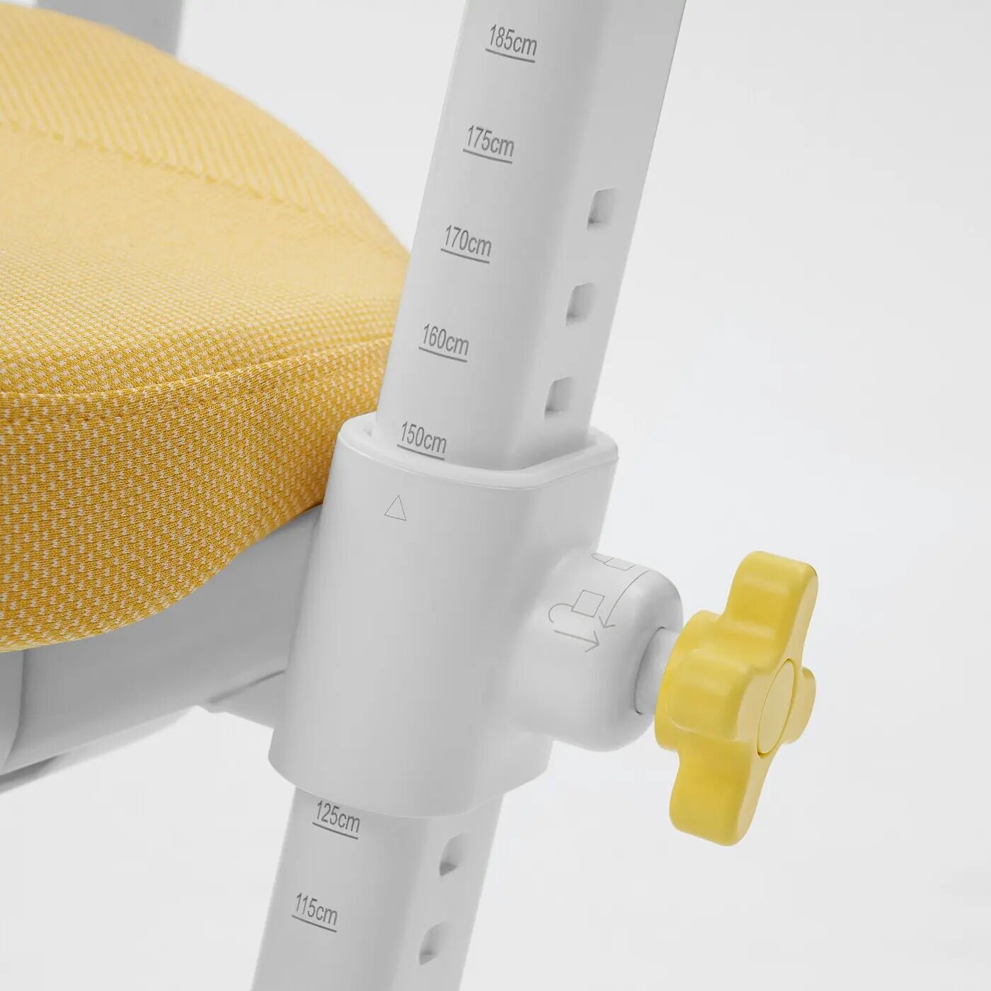 Шкала на направляющей кресла — это всего лишь указатель для установки высоты сиденья в соответствии с вашим ростом — сядьте и отрегулируйте положение так, как вам удобно.