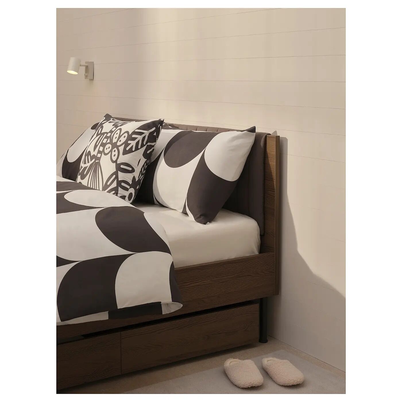Вы можете добавить ящики для хранения BRUKSVARA снизу. Идеально подходит для хранения дополнительных одеял и подушек.