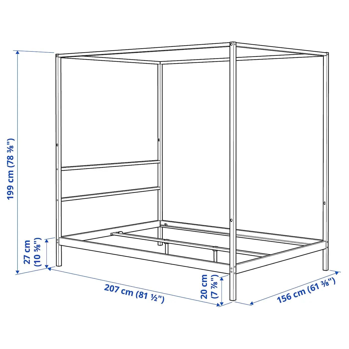 Сочетайте эту раму кровати с реечным основанием кровати с максимальной толщиной 4 см, чтобы рейки были скрыты в раме. Рейки более высокого основания кровати могут быть видны по бокам кровати.