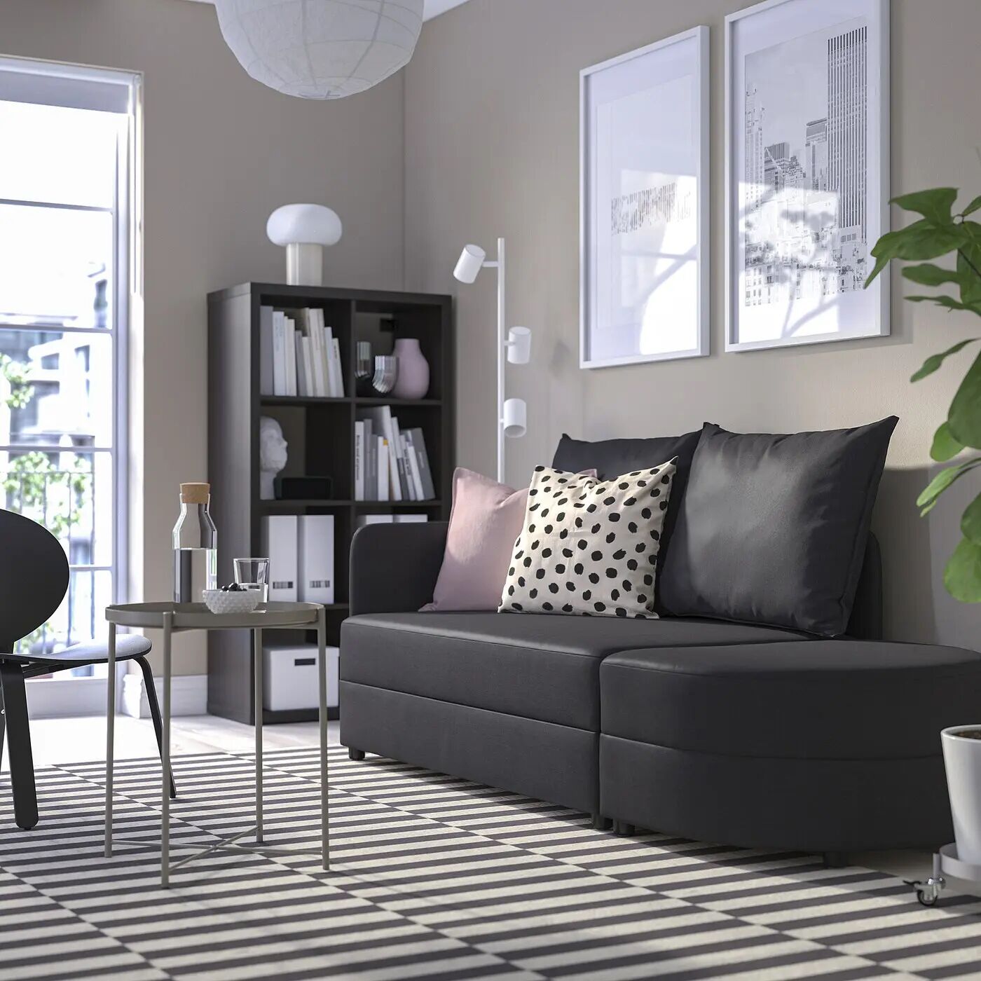 Диван-кровать оснащен практичными местами для хранения вещей как под сиденьем, так и в пуфе.
