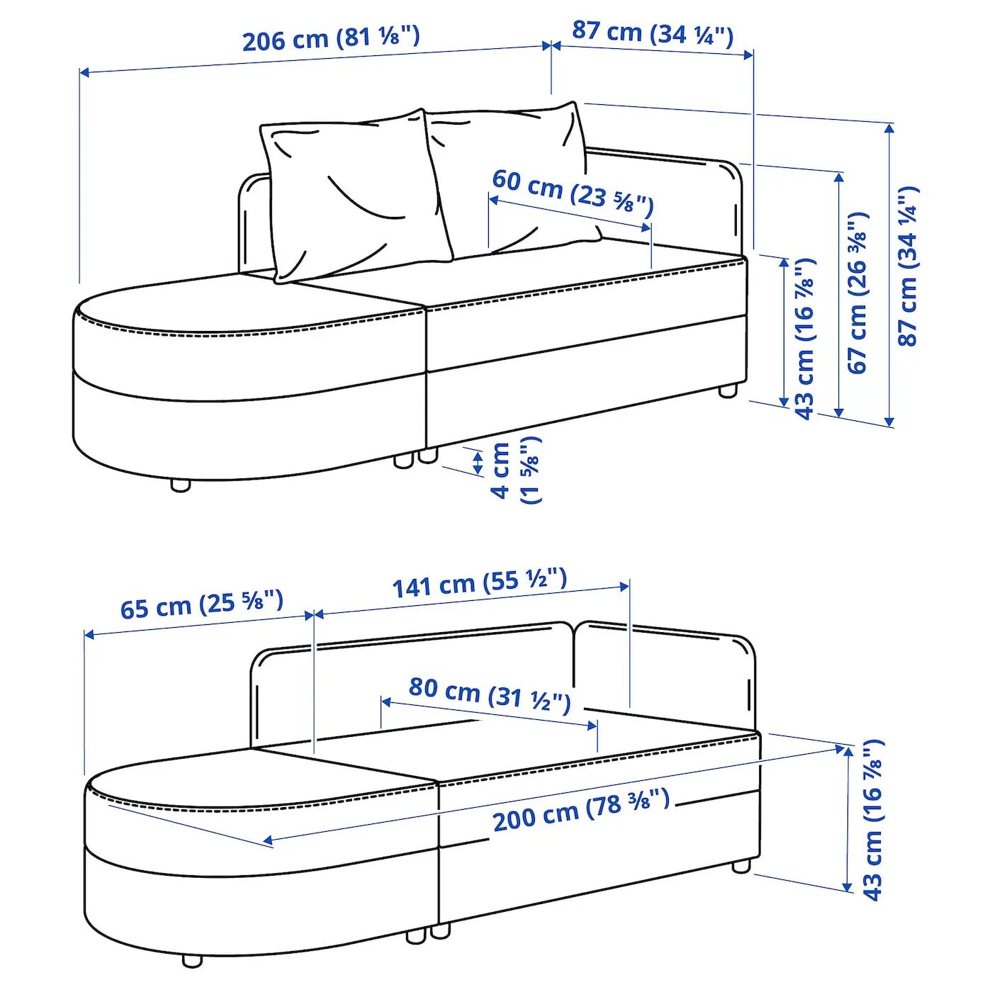 Вы можете легко создать односпальную кровать, прикрепив пуф к сиденью и просто сняв подушки спинки.