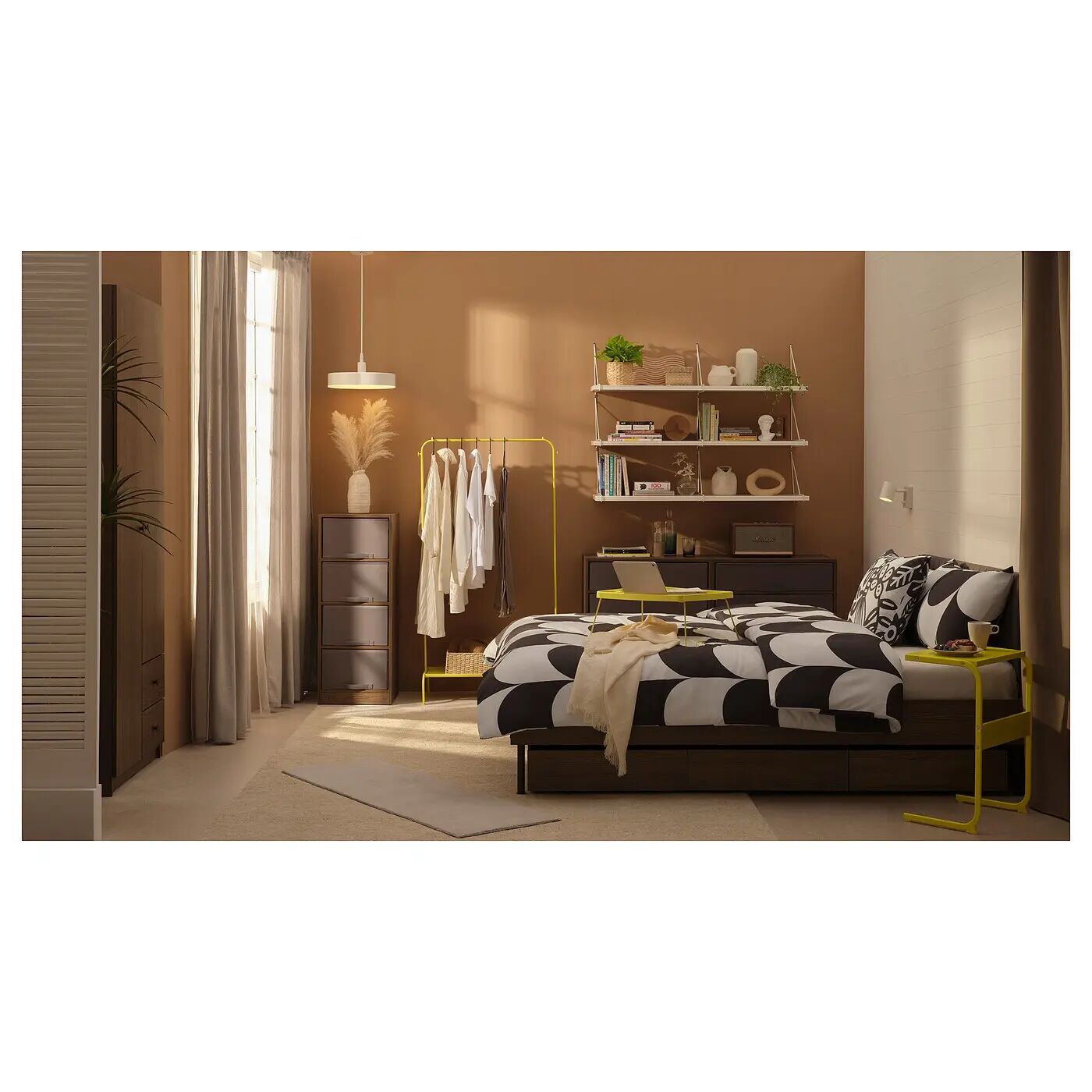 Вы можете добавить ящики для хранения BRUKSVARA снизу. Идеально подходит для хранения дополнительных одеял и подушек.