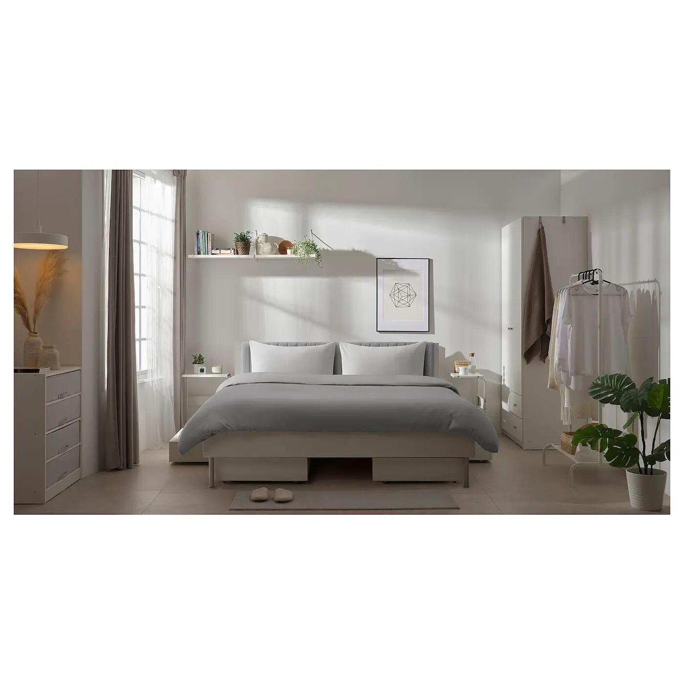 Вы можете добавить ящики для хранения BRUKSVARA снизу. Идеально подходит для хранения дополнительных одеял и подушек.