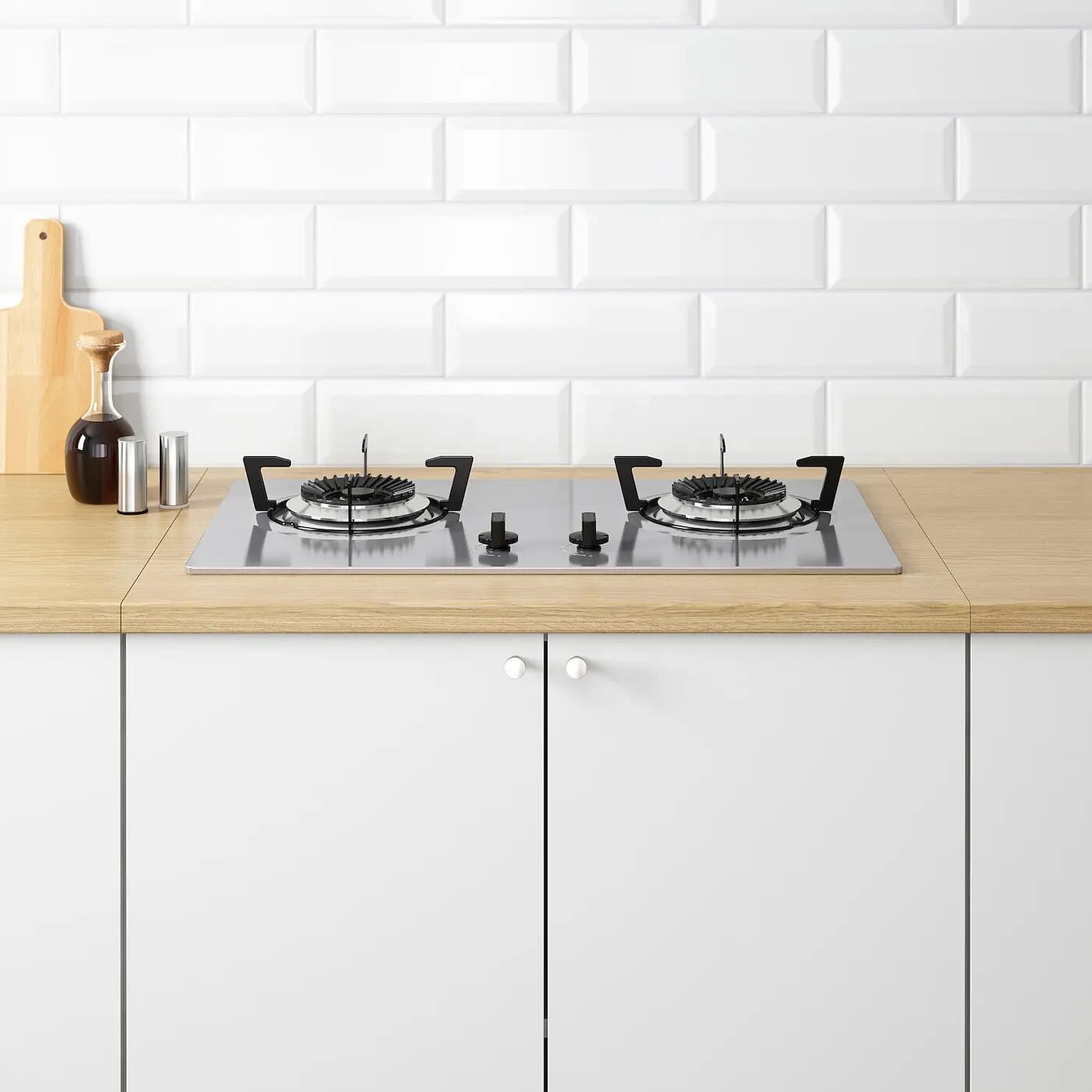 Выберите переносную варочную панель и настенную вытяжку, а также дополните их ручками, чтобы сделать кухню более индивидуальной.