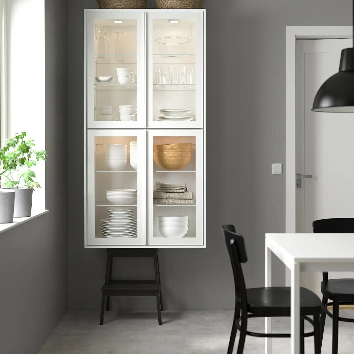 Настенный шкаф горизонтальный со стеклянной дверью METOD IKEA, 80x37x40 см, цвет white/hejsta white clear glass