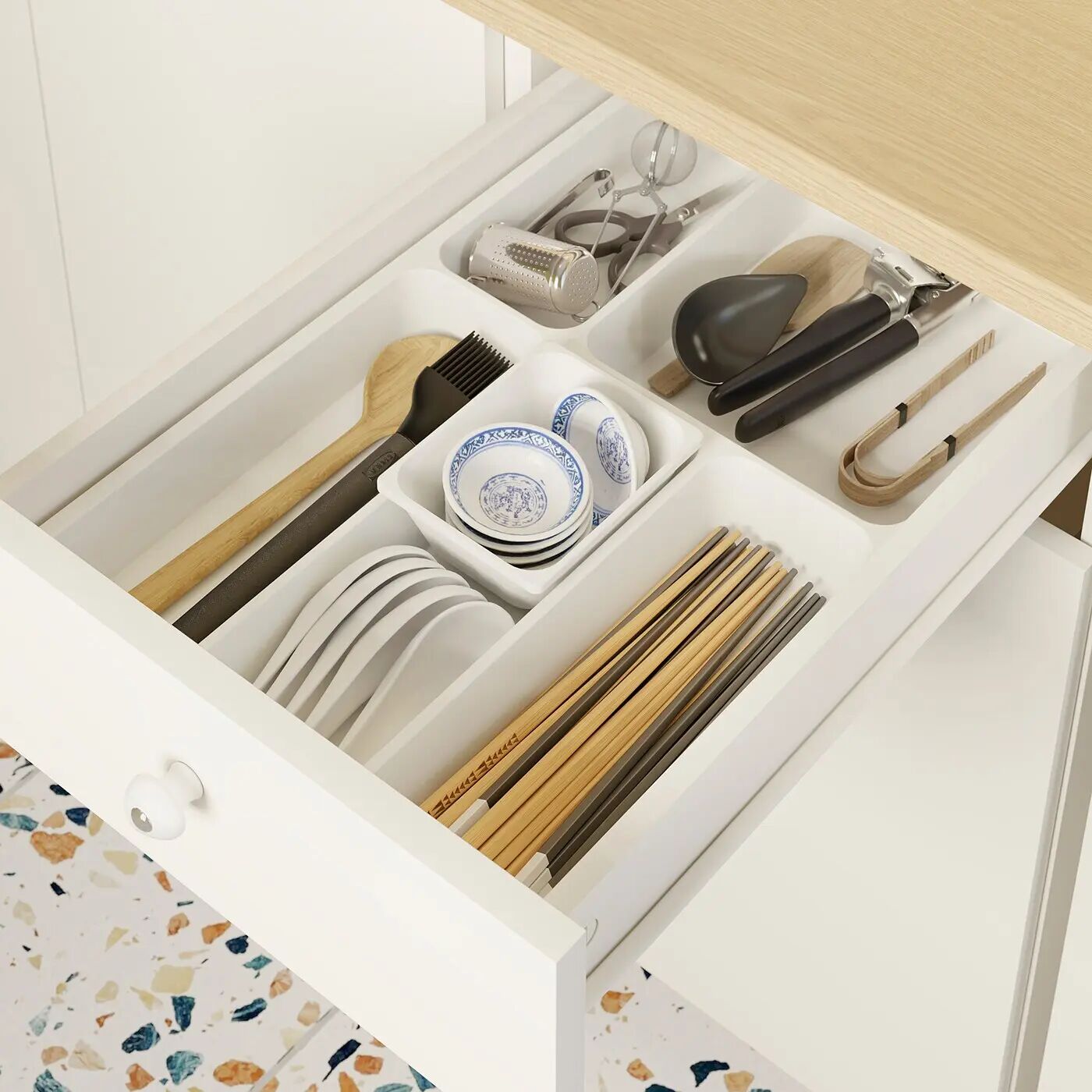 Добавьте органайзеры, освещение и настенные аксессуары, чтобы сделать кухню более функциональной и обеспечить эффективный рабочий процесс.