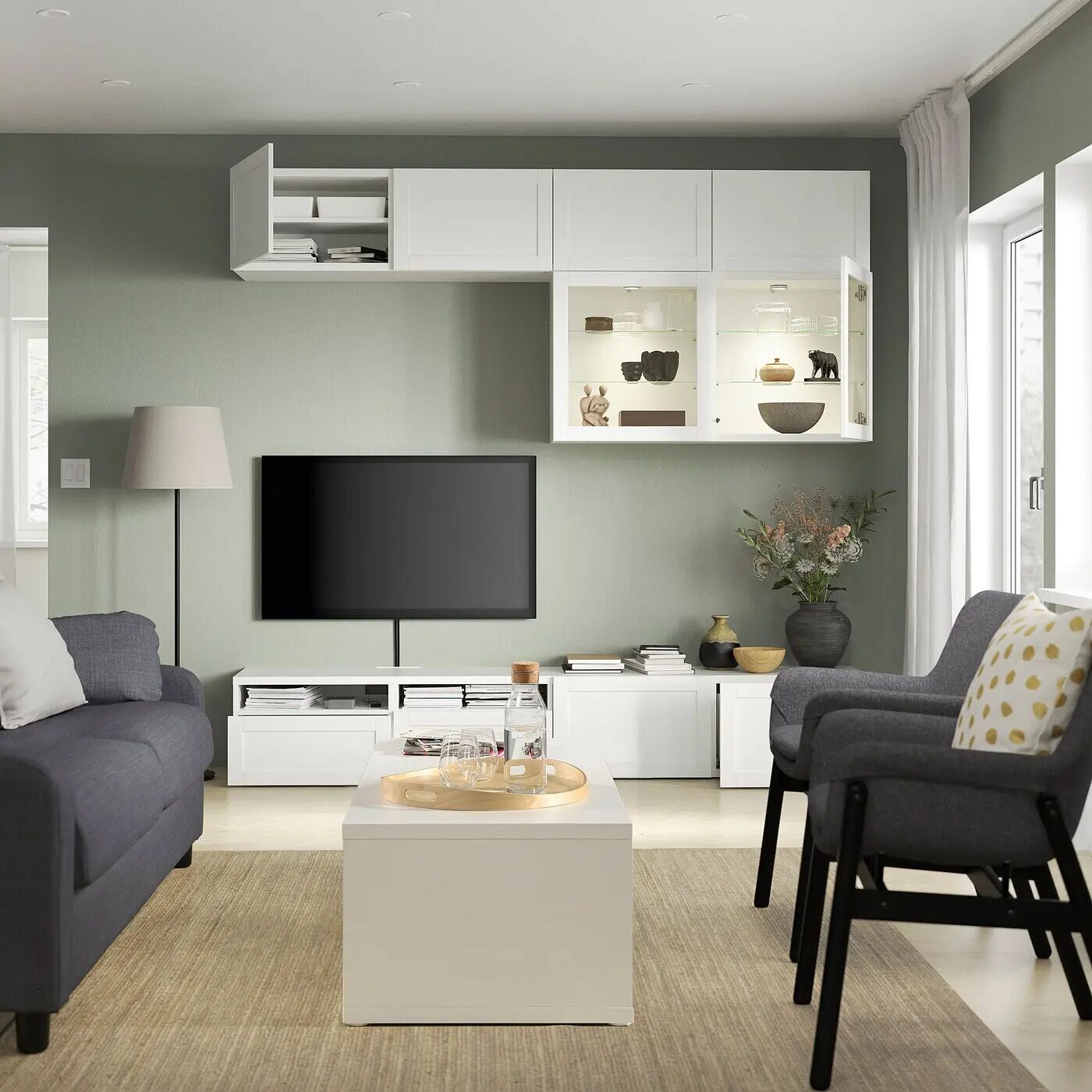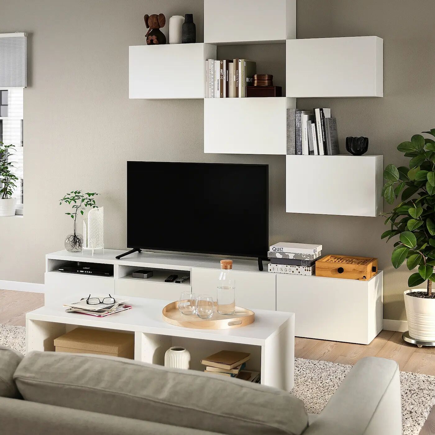 Вы можете легко придать журнальному столику свою индивидуальность с помощью полок, ножек, дверец и ящиков из серии BESTÅ.