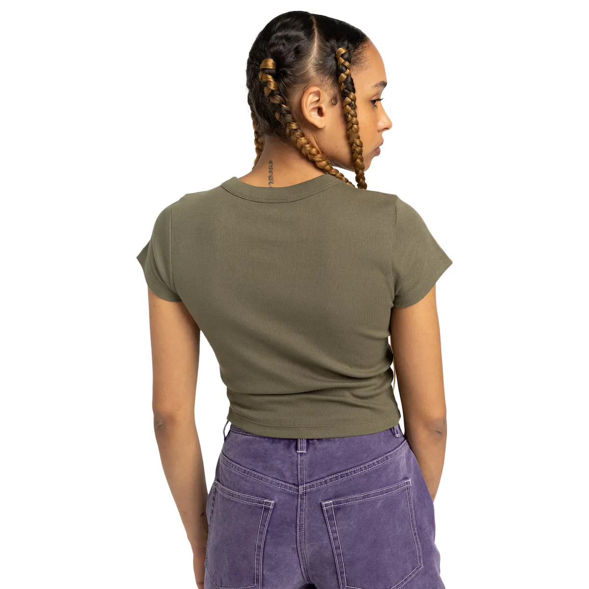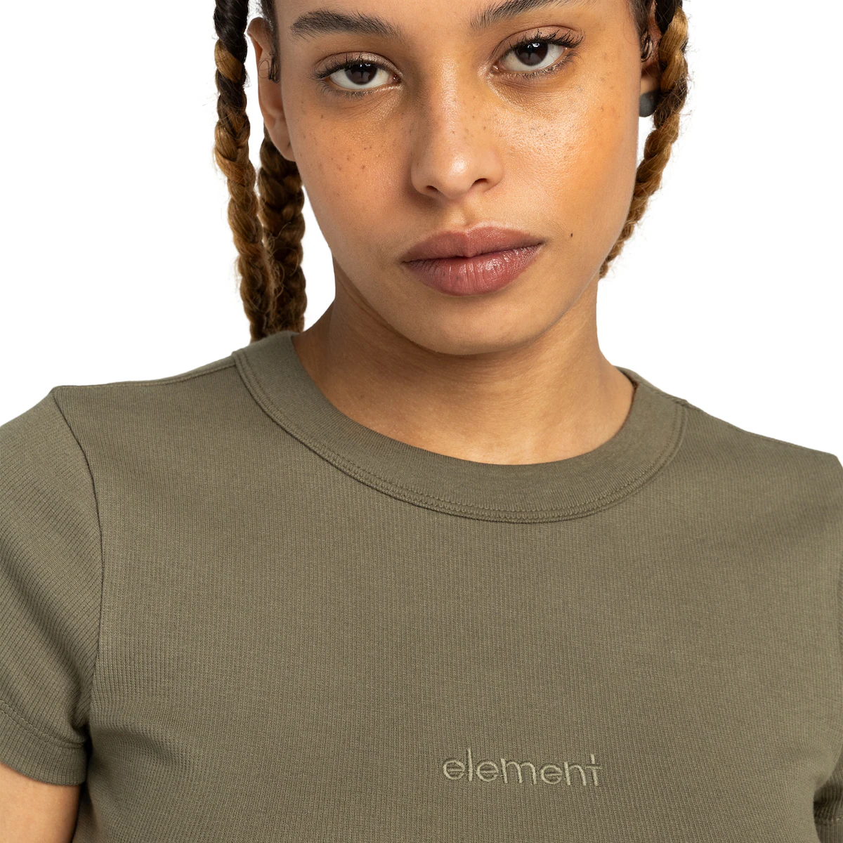 Футболка с коротким рукавом для женщин. Характеристики включают: Коллекция: основная коллекция, Ткань: трикотажная рибана, смесь 95% органического хлопка и 5% эластана (220 г/м2), Сознательно по природе: органический хлопок GOTS, Крой: короткий стиль, Вырез: круглый вырез, Рукава: короткие рукава, Закрытие: без разрезов и Бренд: вышитый логотип на груди.