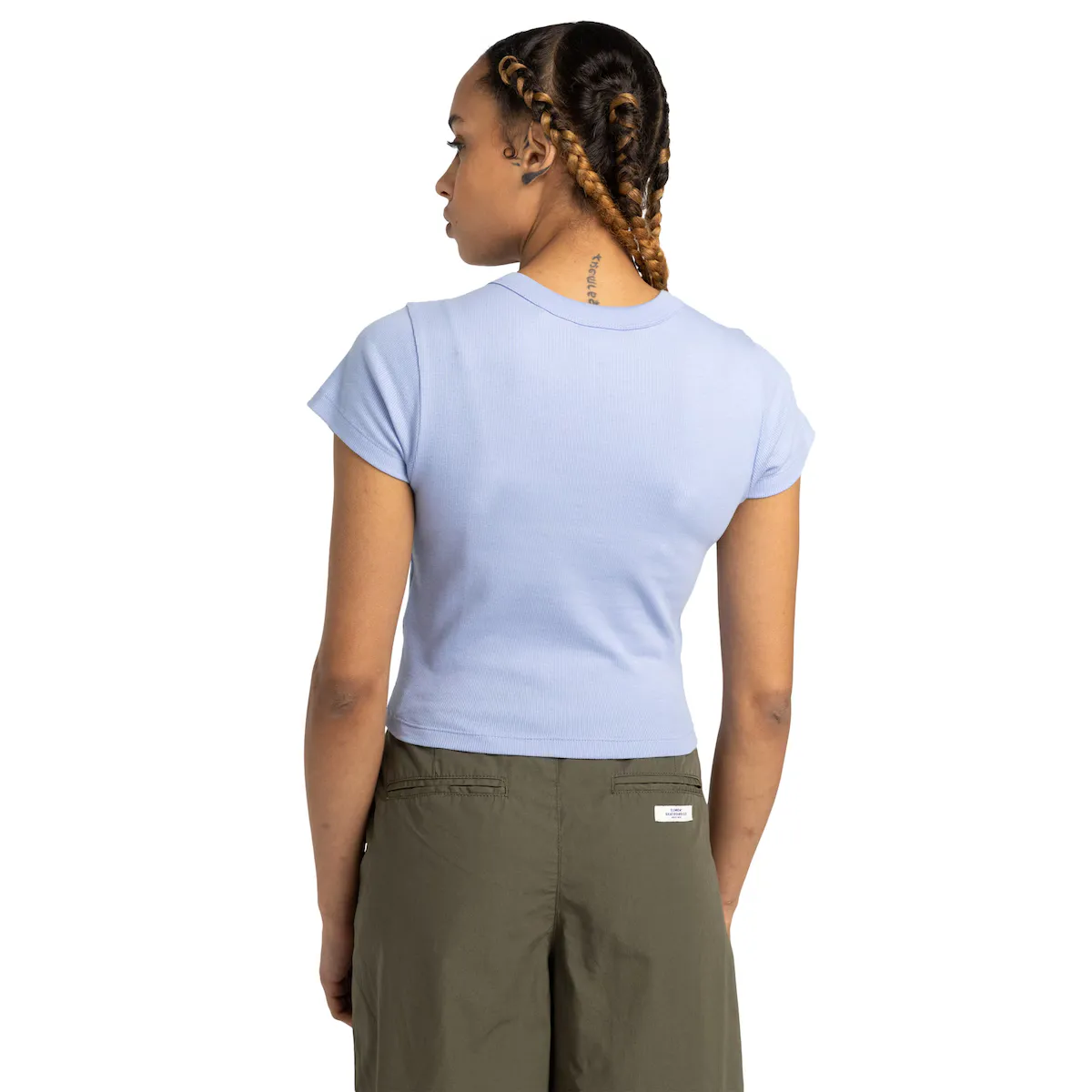 Футболка с коротким рукавом для женщин. Характеристики включают: Коллекция: основная коллекция, Ткань: трикотажная рибана, смесь 95% органического хлопка и 5% эластана (220 г/м2), Сознательно по природе: органический хлопок GOTS, Крой: короткий стиль, Вырез: круглый вырез, Рукава: короткие рукава, Закрытие: без разрезов и Бренд: вышитый логотип на груди.