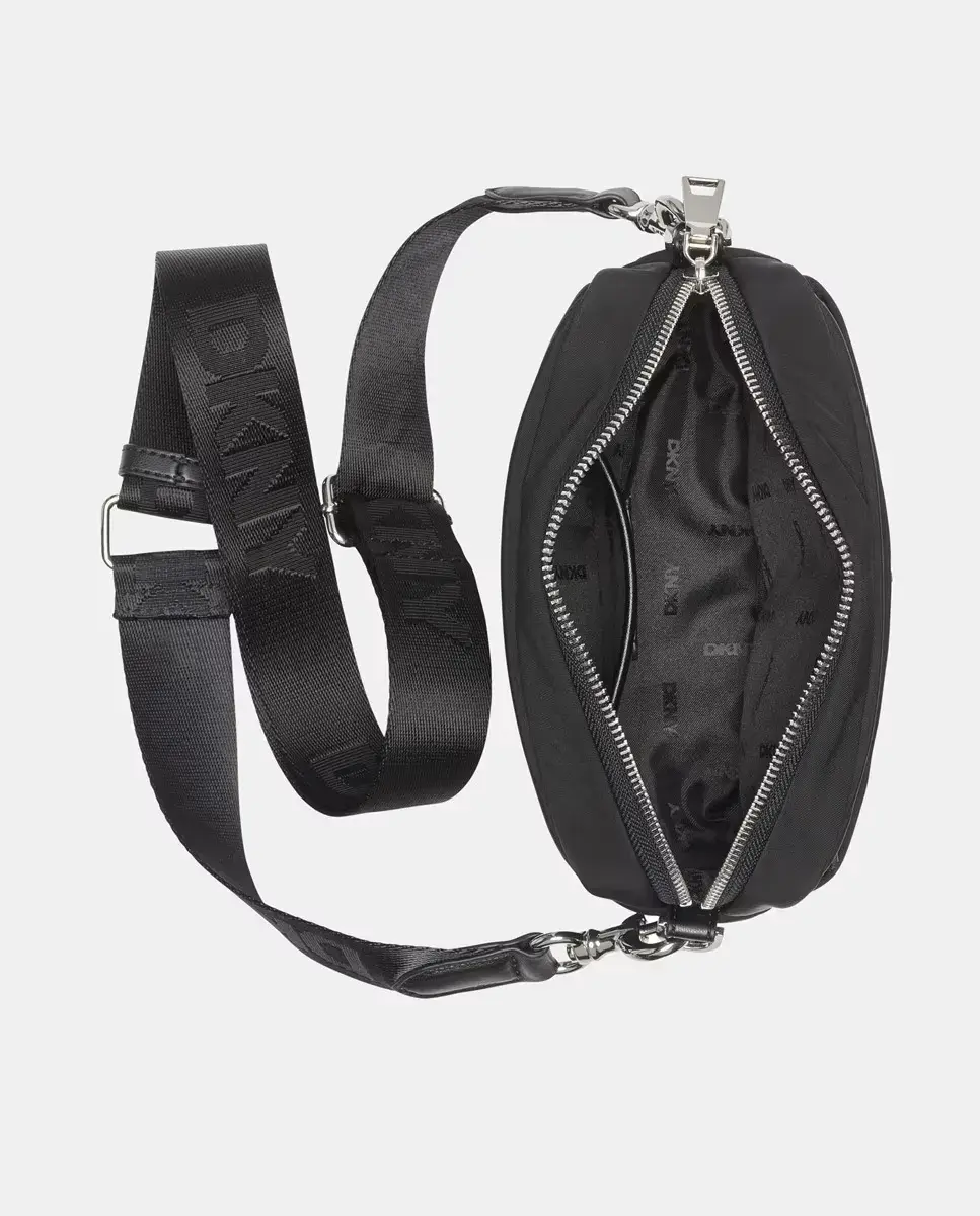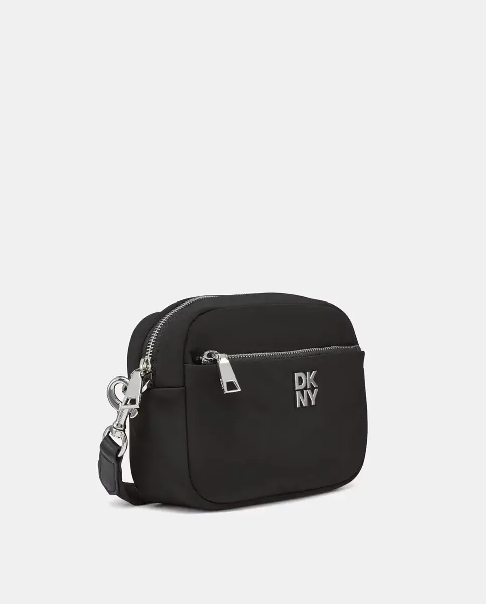 Сумка JENNY в стиле камерной сумки из нейлона с плечевым ремнем с логотипом, с застежкой на молнии и передним карманом на молнии, металлический логотип DKNY спереди.