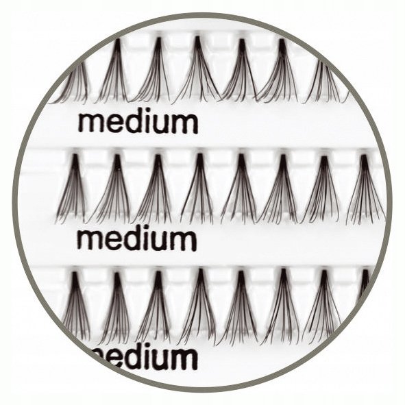 Волоски средней длины рекомендуются в качестве дополнения к повседневному и вечернему макияжу. Они позволяют создать собственный стиль глаз, моделируя и подчеркивая их. Нанесенные по центру линии роста ресниц, они оптически увеличивают глаза, нанесенные в уголки, создают эффект кокетливого взгляда.