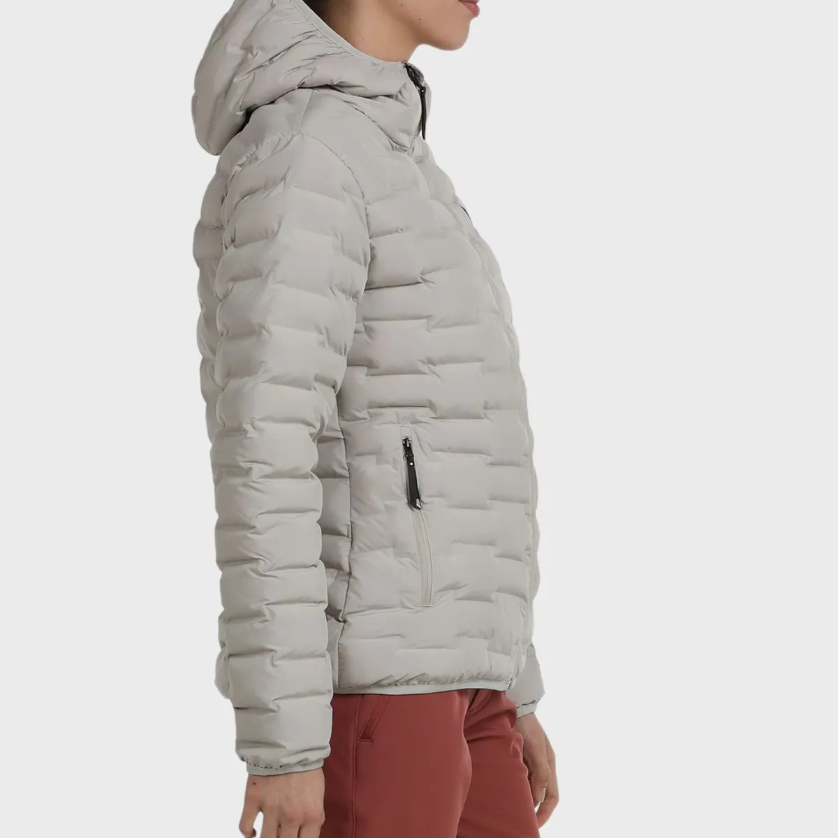 Синтетическая утепленная куртка, изготовленная из 3D ткани. Особенностью этой ткани является конструкция с камерами для размещения утеплителя без швов, что увеличивает стойкость изделия к воде и ветру. Внешняя ткань из полиэстера тафета с обработкой DWR, утеплитель SORONA AURA от Dupont. Боковые карманы на молнии, капюшон, манжеты и подол на резинке.