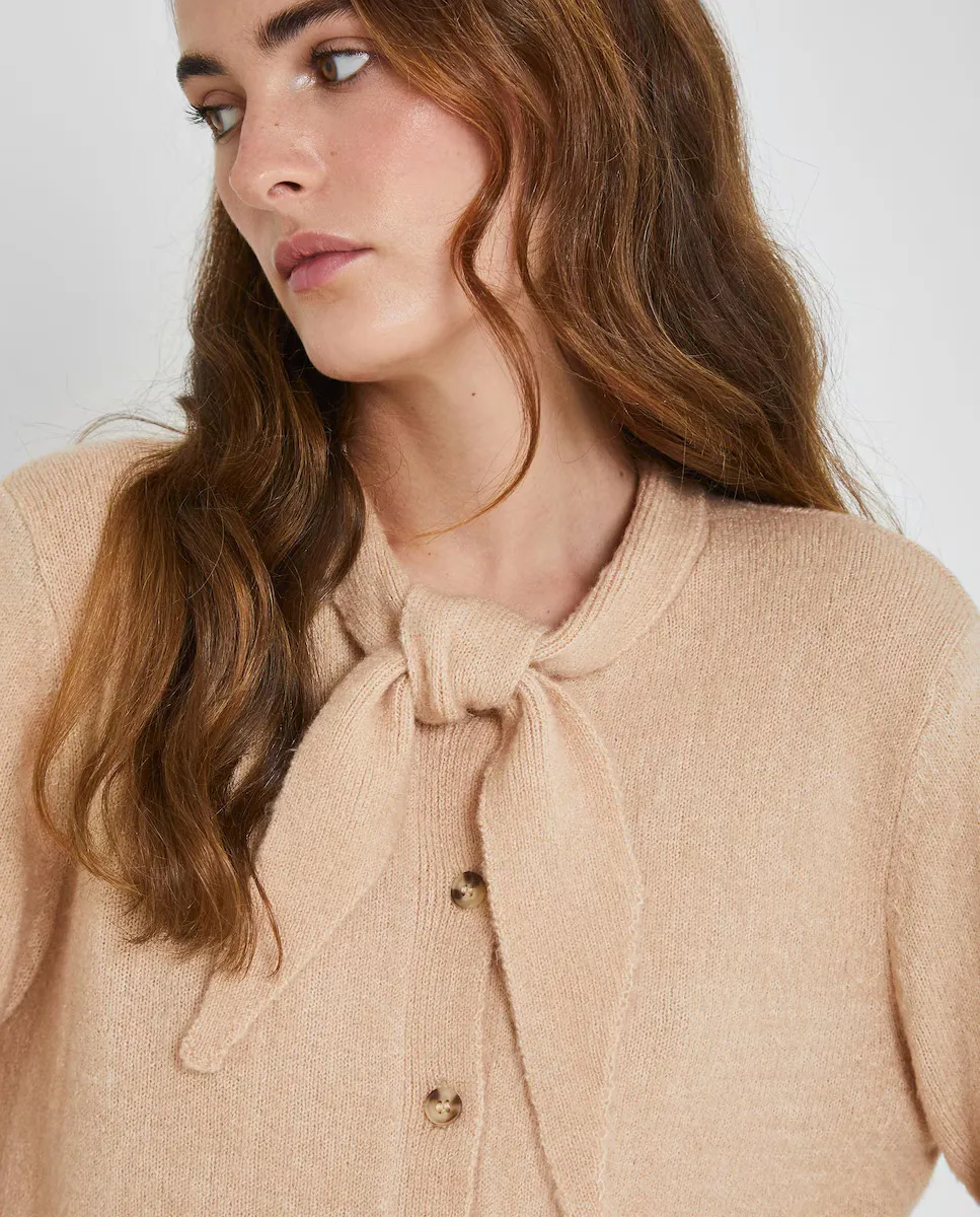 Женский кардиган с бантом на шее Trucco, бежевый 6 279₽