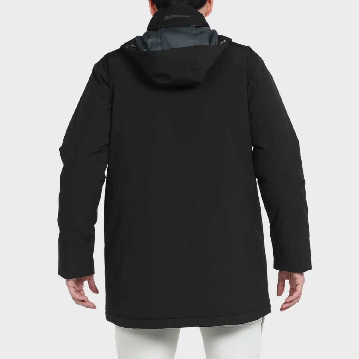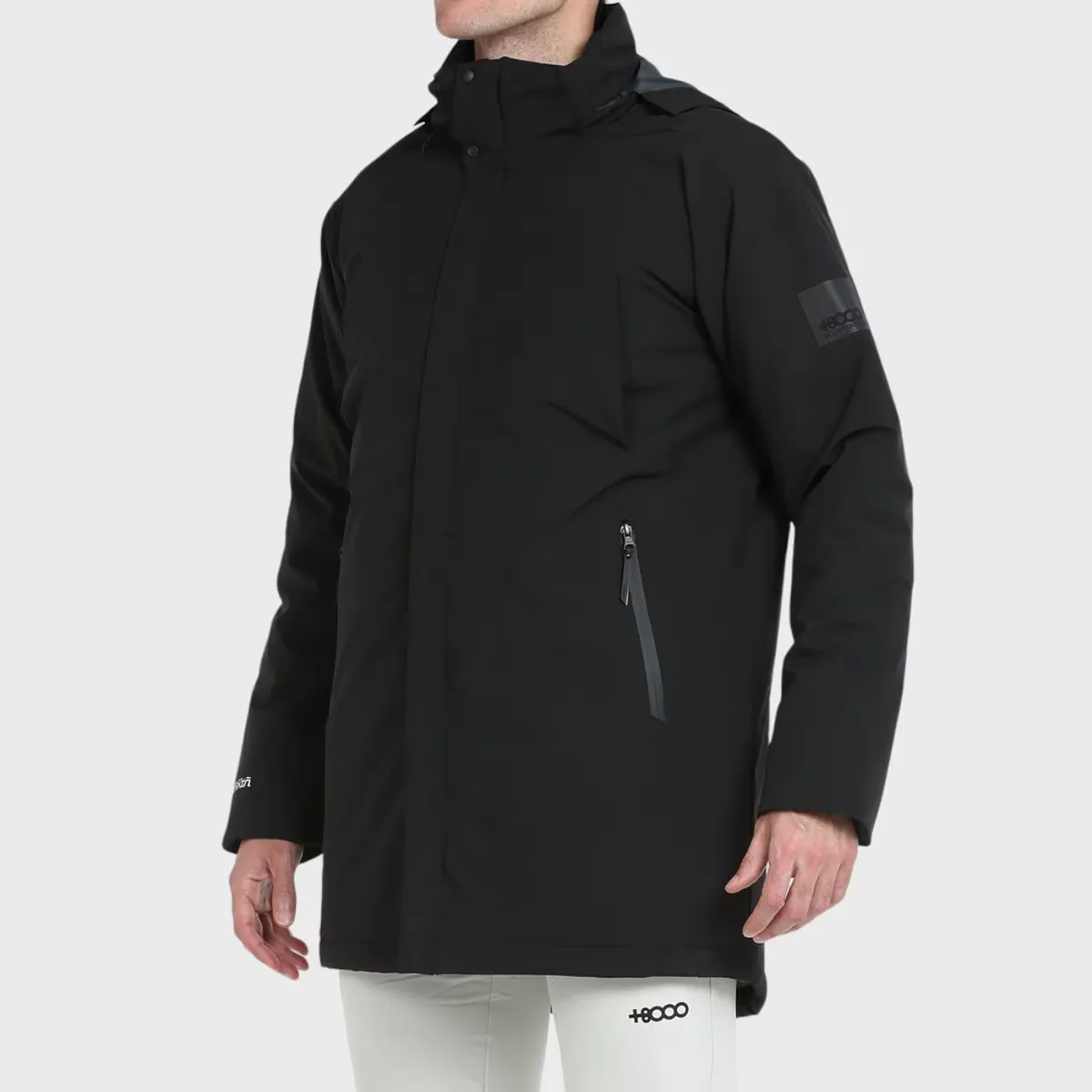 Минималистичный дизайнерский плащ. Внешняя ткань водонепроницаемая с мембраной Sealskin (водонепроницаемая/дыхательная 5000/5000). Легкий и мягкий наполнитель качества Warmax. Капюшон, скрывающийся в воротнике, боковые карманы с водонепроницаемыми молниями, центральная молния с двумя бегунками, двойные манжеты с регулируемым внутренним манжетом.