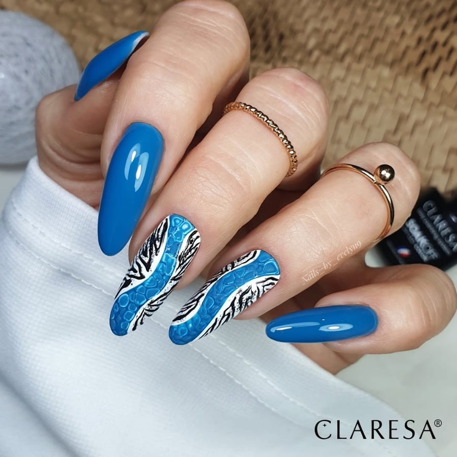 На предварительно затвердевшую гибридную базу Claresa нанесите тонкий слой цветного гибридного лака и затвердейте в УФ/LED-лампе. Для достижения удовлетворительного эффекта можно повторить действие. Закрепите укладку, нанеся и просушив средство TOP Claresa.