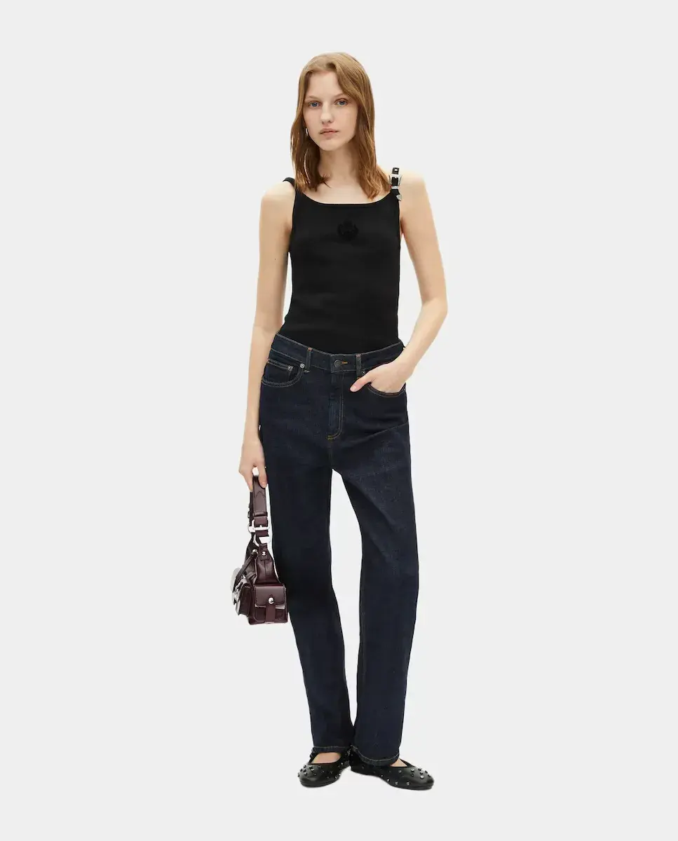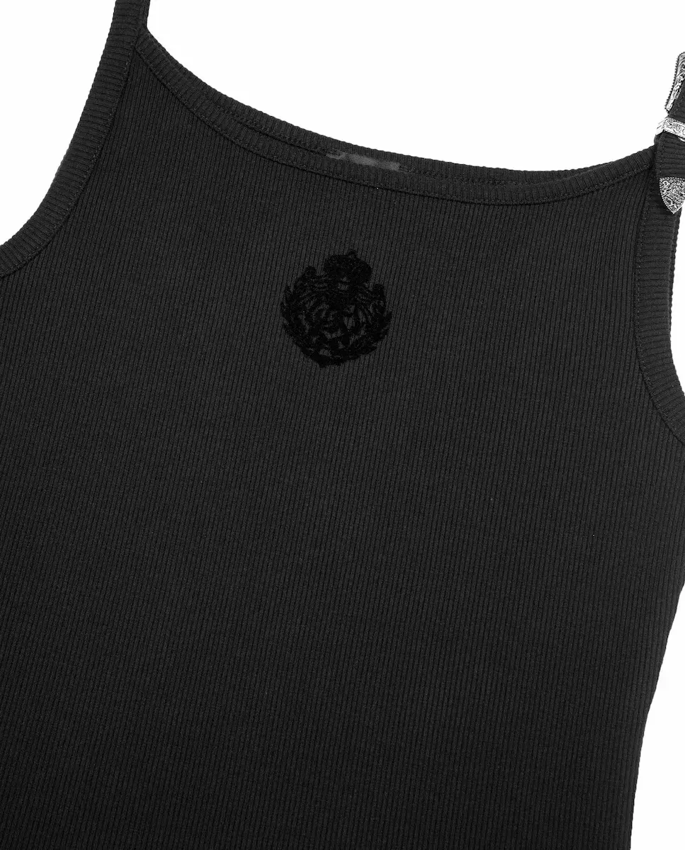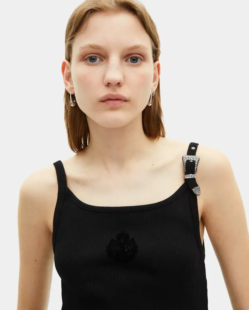 Женская футболка на тонких бретельках The Kooples. Приталенный крой. Квадратный воротник. Бретели с западной застежкой. Логотип The Kooples с флокировкой в тон.