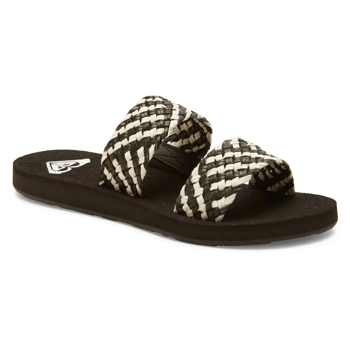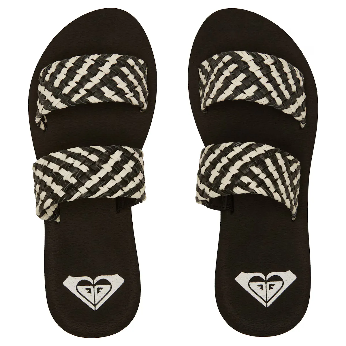 Сандалии для женщин. Характеристики включают: искусственная кожа с двумя ремешками и вставкой из эластичного материала на заднем ремешке для лучшей посадки, литая и профилированная подошва из EVA с текстурированной поверхностью и подошва из переработанного TPR с классическими деталями Roxy для лучшего сцепления на мокрых и сухих поверхностях.