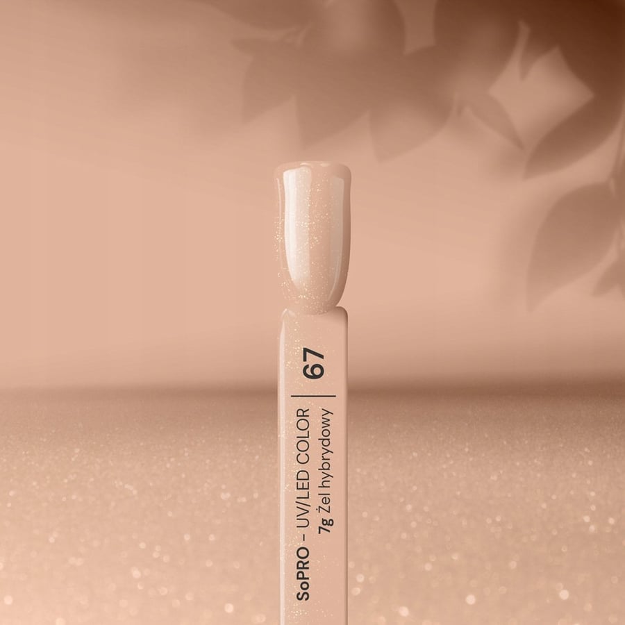 Гибридный лак для ногтей soPRO *067 — теплый бежевый оттенок с эффектом частиц, тонко отражающих свет, идеально подойдет любительницам классического маникюра и элегантных осенних образов. Вечный, сдержанный и интересный одновременно, подходящий к любому настроению.