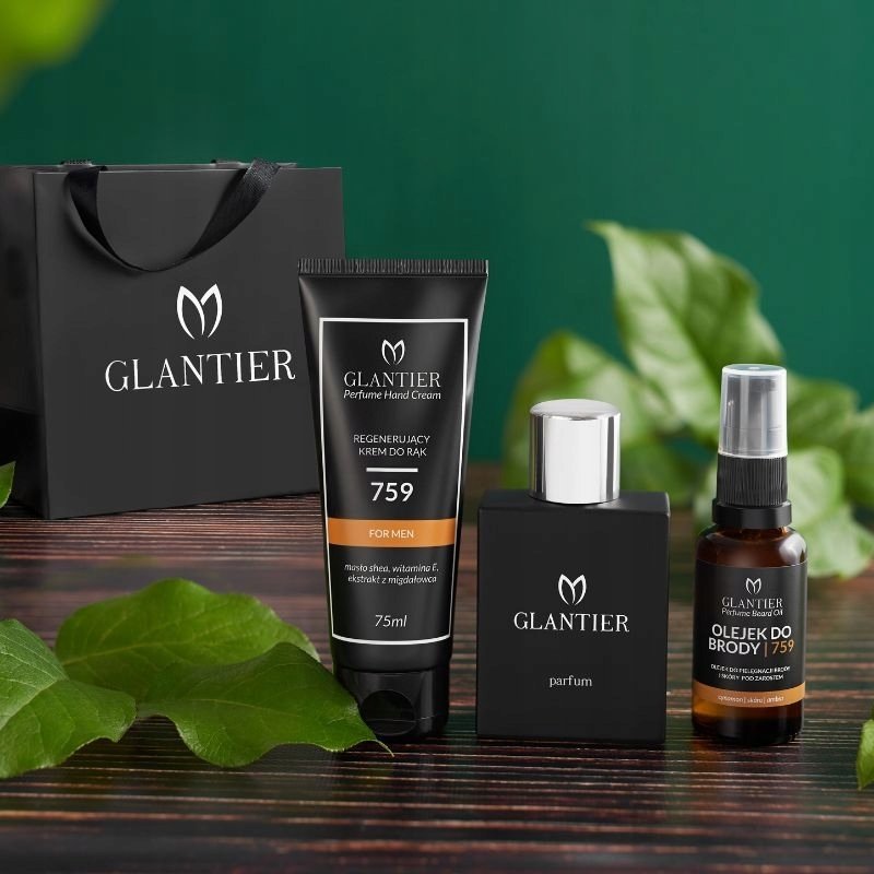 В набор входят: Премиальные духи 759, масло для бороды 759, восстанавливающий крем для рук 759, подарочный пакет.