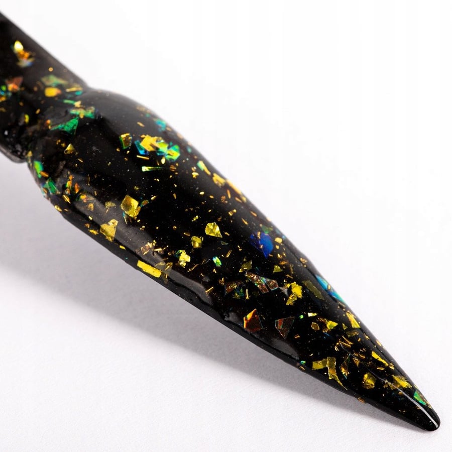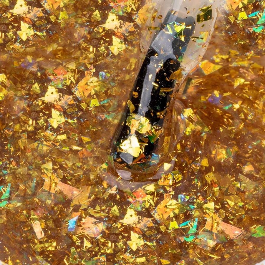 Частицы топов серии Louis имеют неравномерную форму и переливаются голографическим блеском. Верхние покрытия можно наносить как на поверхность ногтя, так и под гель или базовое покрытие у кутикулы, чтобы добиться эффекта «пальчиков принцессы».