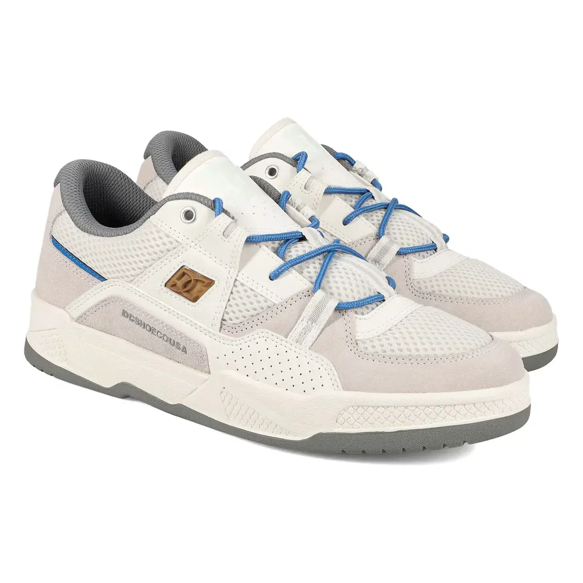 Мужские кроссовки. Особенности включают: верх из кожи и замши, износостойкая резиновая подошва с хорошим сцеплением, внутренний текстиль из сетчатого материала, Бренд: логотип TPR, формованный сбоку, Дизайн Pill Pattern, зарегистрированный товарный знак DC, Другие особенности: сетчатая база и мягкий язычок и воротник для большего комфорта.