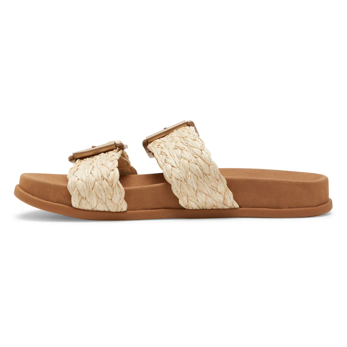 Сандалии для женщин. Характеристики включают: верх из синтетической рафии, верх с двойным ремешком, стелька из переработанного синтетического кожи с анатомически сформированной поддержкой и лазерной гравировкой бренда Roxy, внешний слой из переработанного TPR с деталями Roxy, застежка с регулируемой пряжкой и Подкладка: синтетическая кожа.